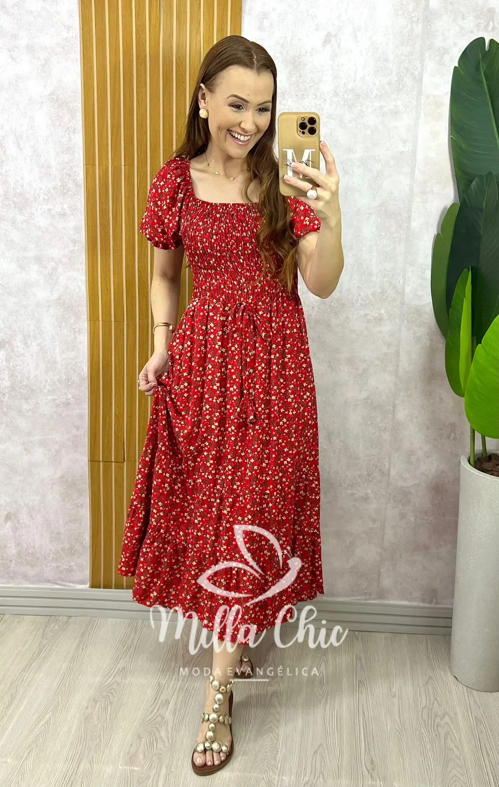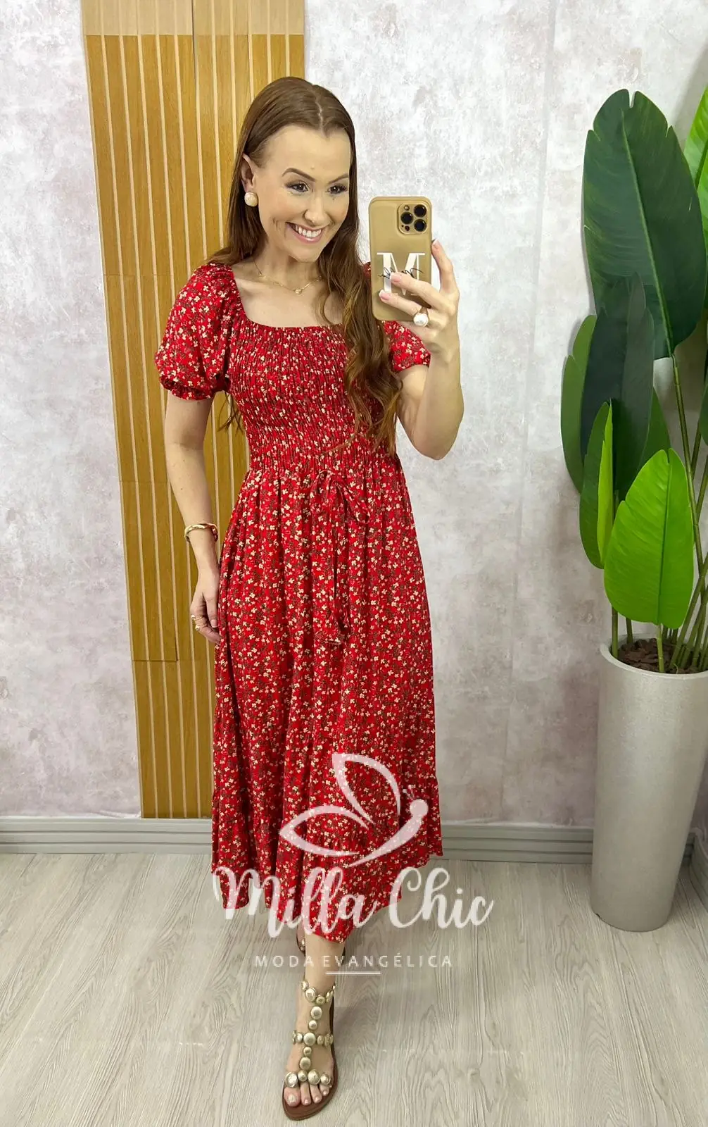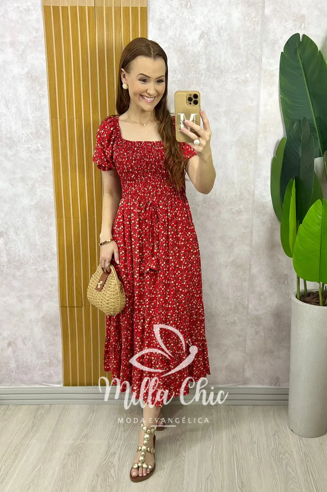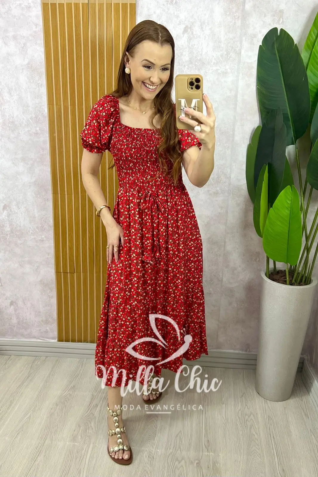 Vestido Melina Manga Princesa - Vermelho - Milla Chic