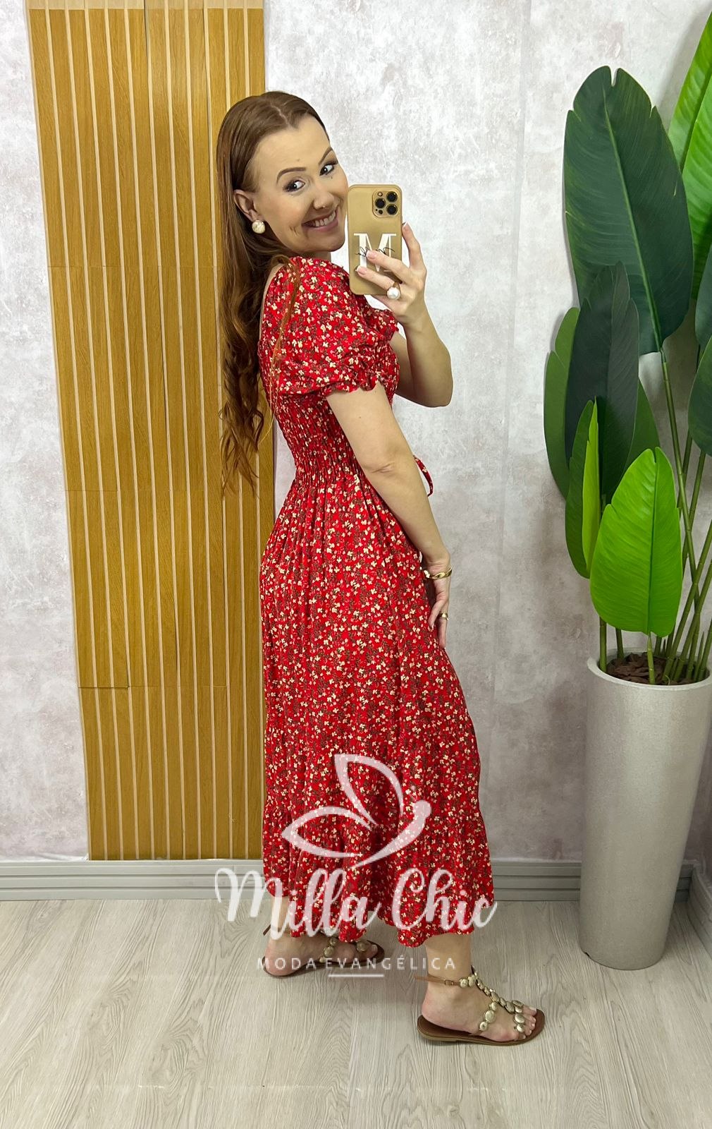 O vestido Melina apresenta um design mídi que fica lindo e a cintura fica bem marcada por conta do design do elastex na parte da blusa proporcionando um caimento perfeito.
