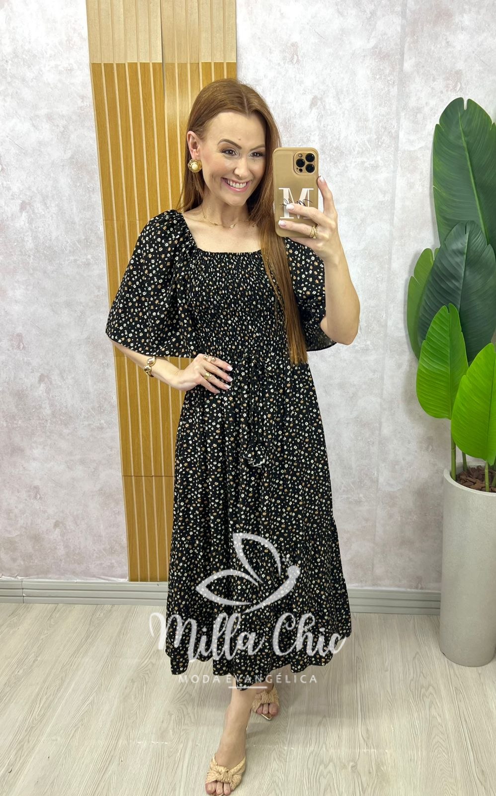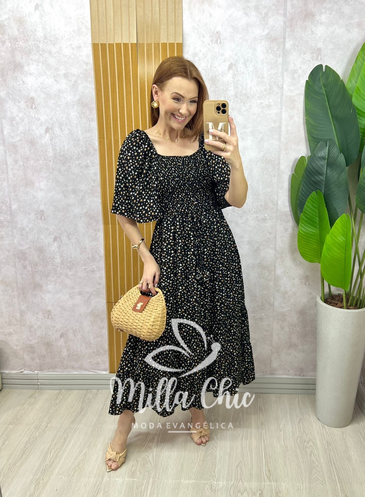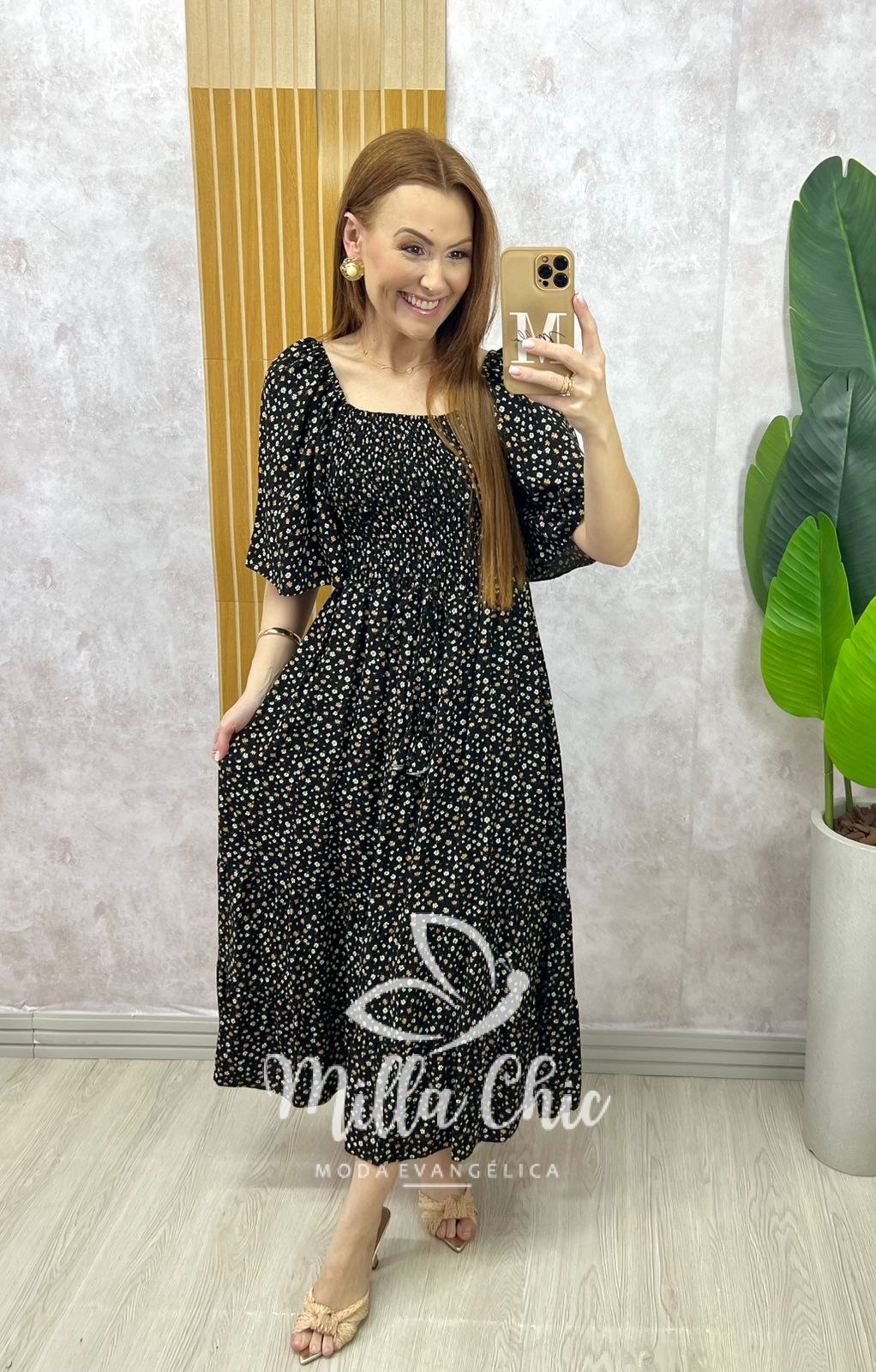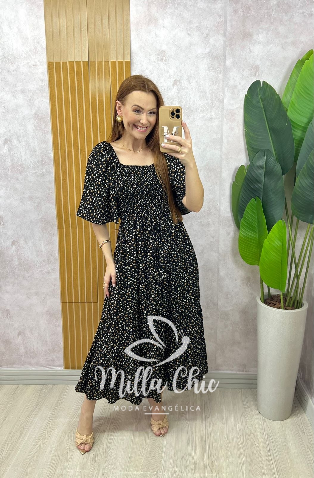 O vestido Melina apresenta um design mídi que fica lindo e a cintura fica bem marcada por conta do design do elástex na parte da blusa proporcionando um caimento perfeito.