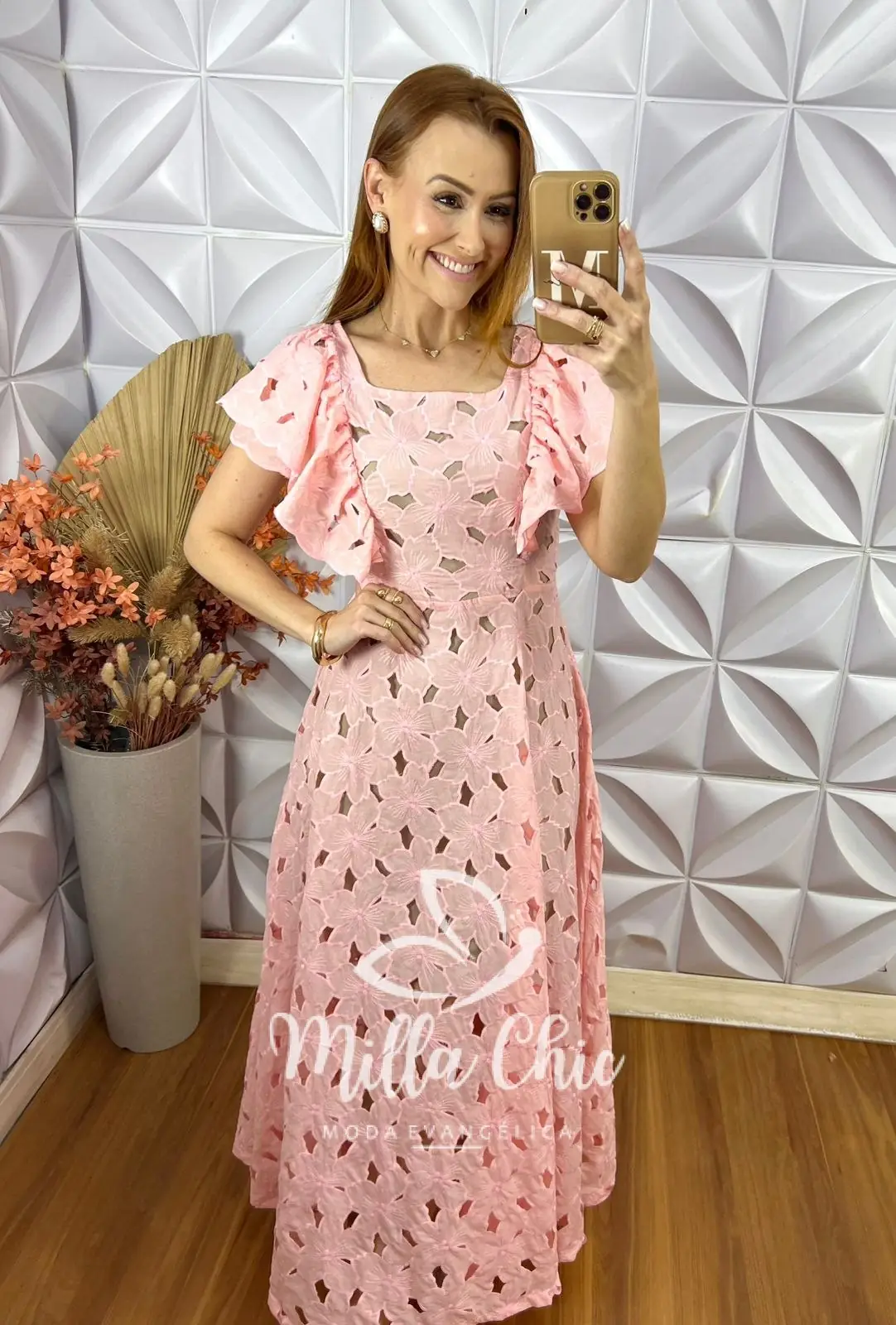 Todo confeccionado no tecido renda Rechilieu 💯 algodão . É um tecido muito lindo e delicado todo feito em bordados .