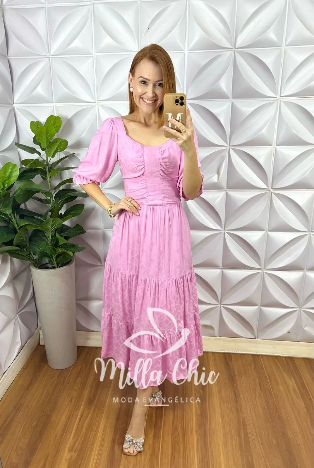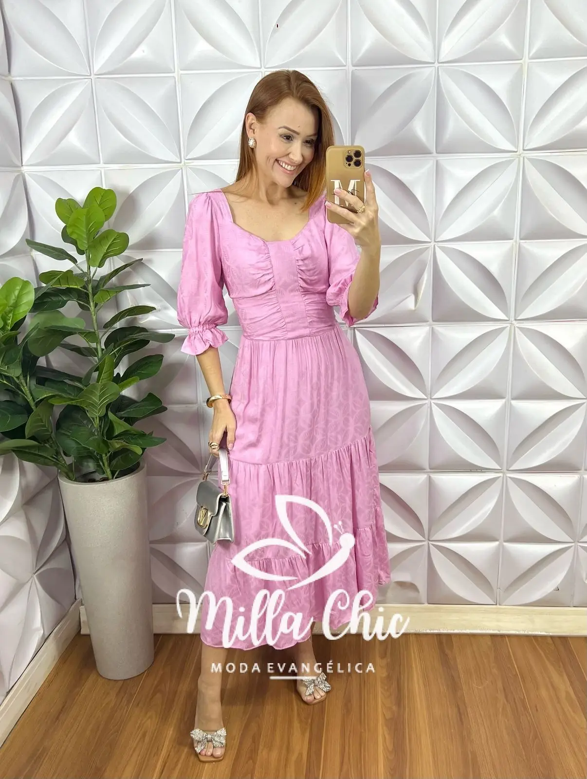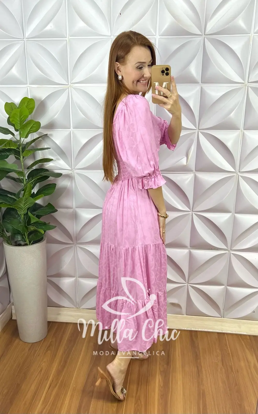 Esse é o nosso vestido Midian . Todo confeccionado em viscose devore . Um tecido bem leve, muito confortável e bem fresco . E todo trabalhado. Um tecido lindo .