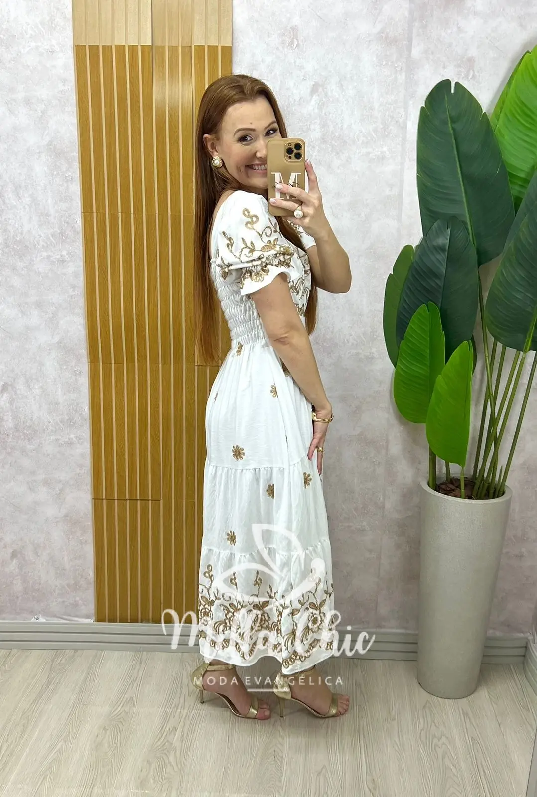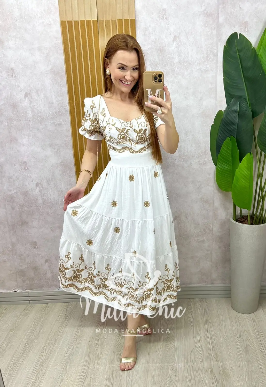 O vestido Miriam te deixa uma princesa. Aquele vestido que quando você veste passa aquela feminilidade, delicadeza e elegância. Um clássico romântico e delicado mas com toque contemporâneo.
