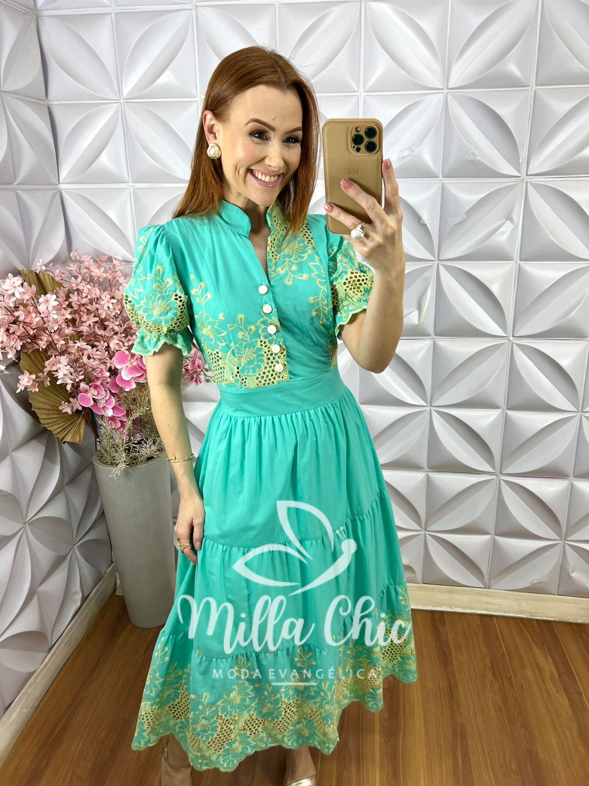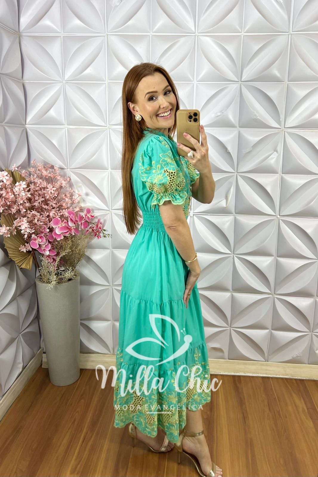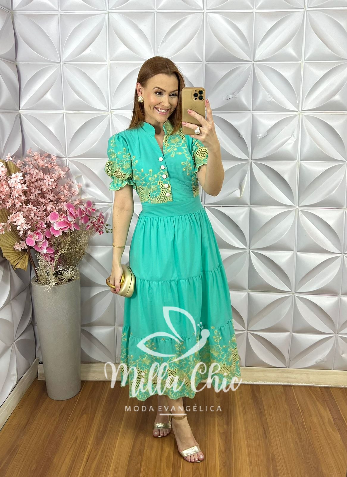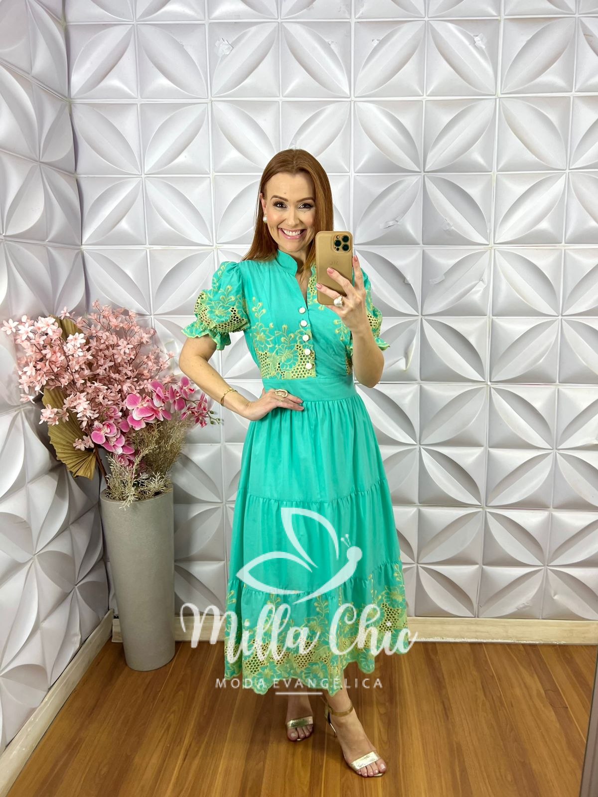 Confeccionado em lesie 100% algodão e os detalhes na barra e na parte da blusa são todos bordados . Um toque de elegância sem igual .