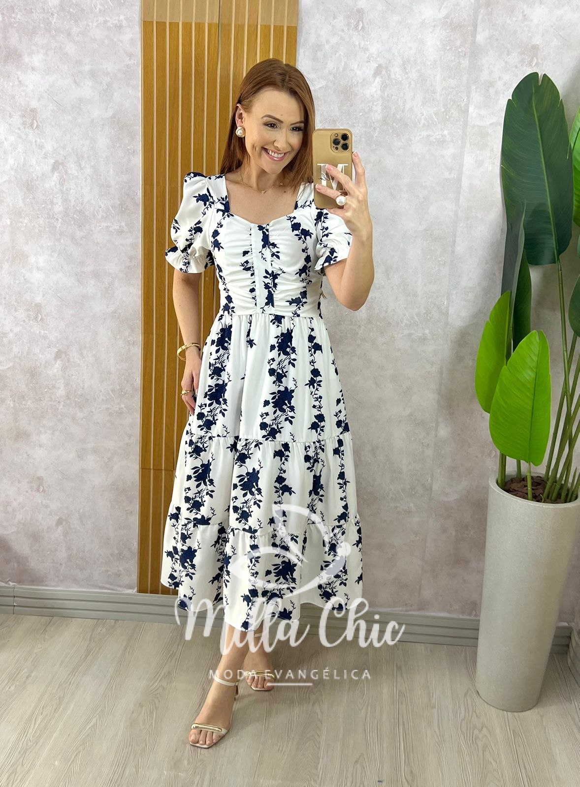 Um vestido que esbanja leveza e romantismo em cada detalhe! Perfeito para todas as ocasiões, com aquele toque que transforma um momento simples em memórias incríveis! O vestido midi Monica é confeccionado crepinho com toque suave e confortável. {bem leve e fresco} em uma bela estampa localizada de rosas vermelhas e azul marinho encaixadas de forma harmoniosa, deixando a peça ainda mais sofisticada e única! O fundo branco realça a beleza das flores e traz ainda mais leveza. Uma composição pensada com todo cuidado para valorizar e torná-lo ainda mais especial! Ainda possui: forro , decote reto diferenciado , corpinho estruturado, suaves nervurinhas , manga princesa bem delicada e um caimento impecável, pois ele tem o elastex nas costas,