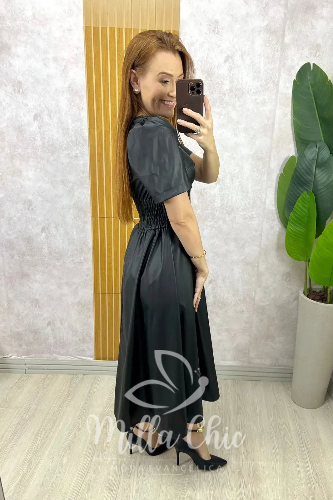 O Vestido Naiara é a definição de sofisticação atemporal. Confeccionado em tecido PU de alta qualidade, ele traz um acabamento elegante que valoriza a peça e entrega um visual moderno e refinado.