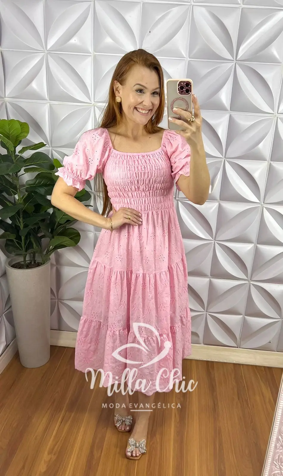 Vestido No Laíse De Algodão Mídi Manga Princesa Eduarda – Rosa