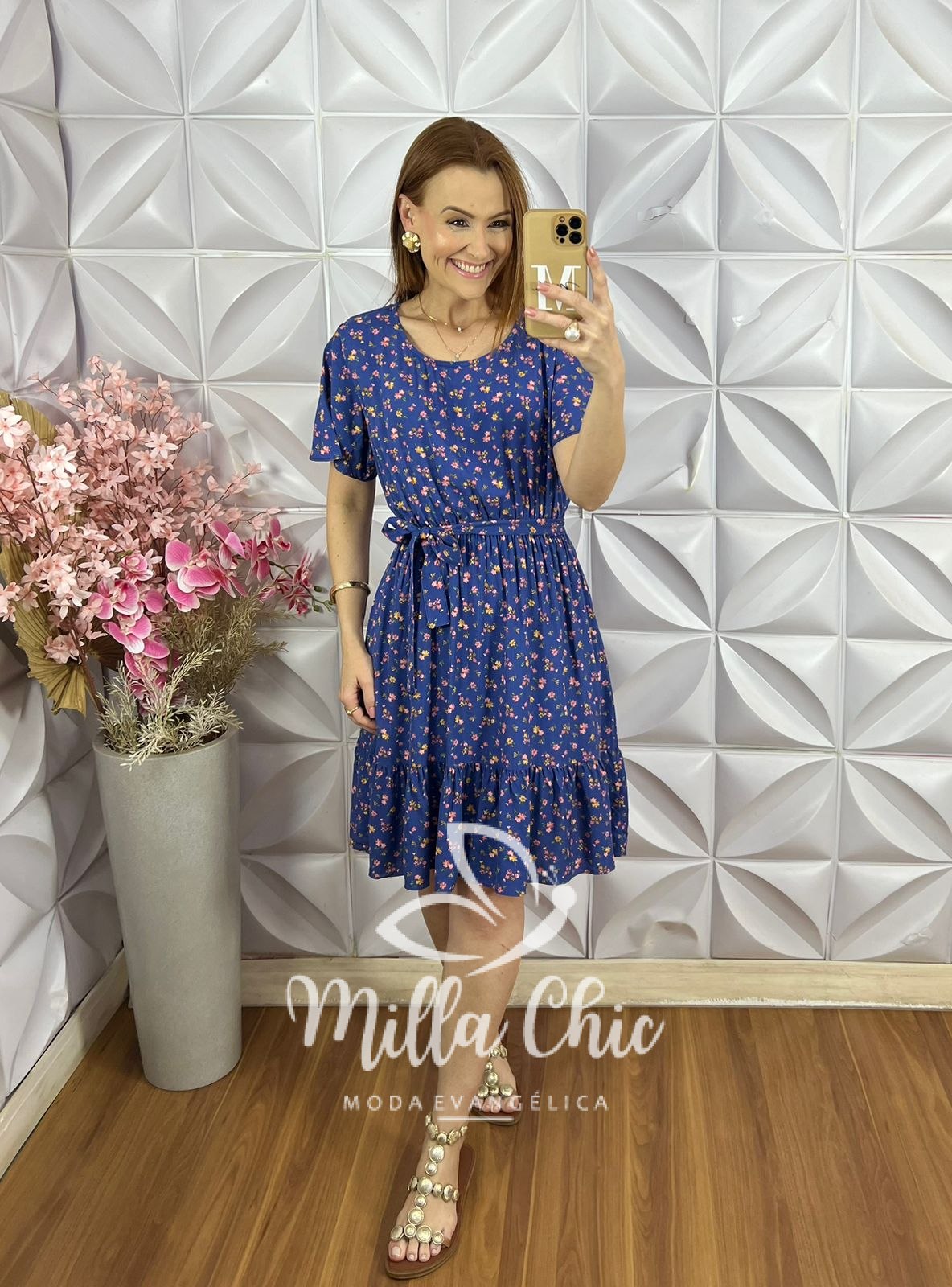 Vestido Noêmia Em Viscolinho - Azul New Blue - Milla Chic