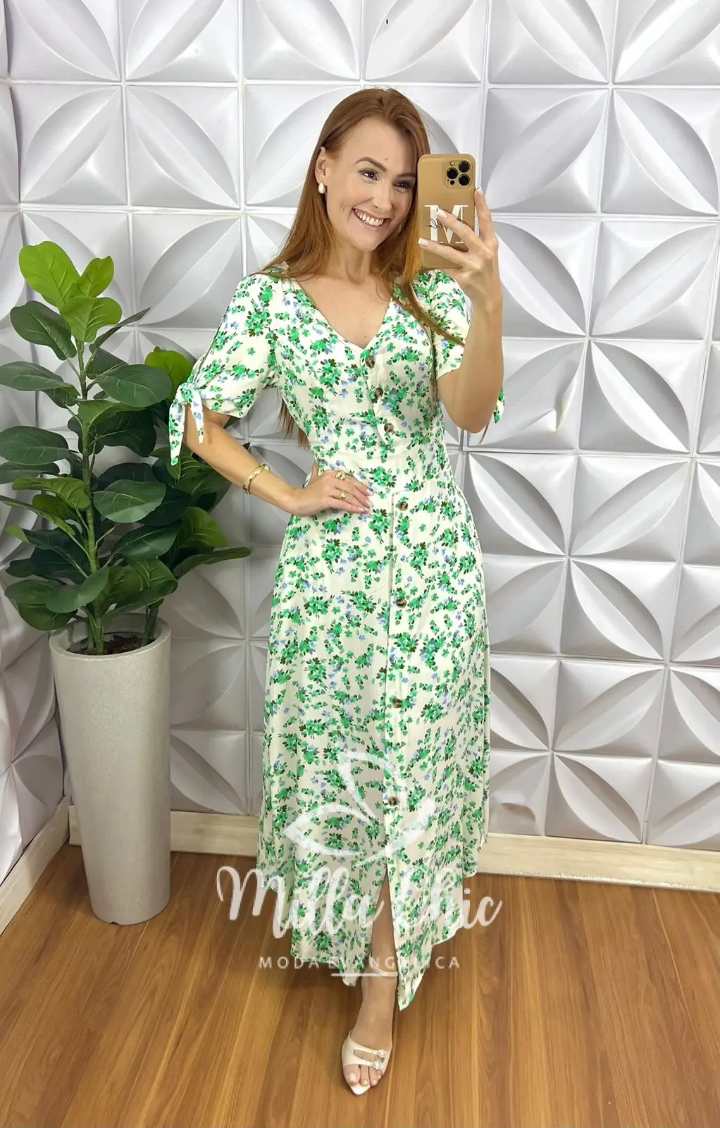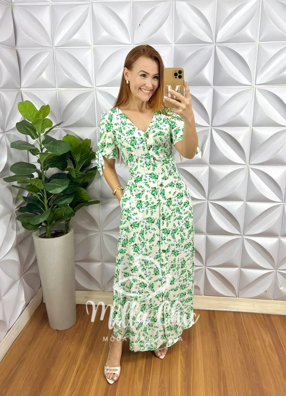 Todo confeccionado no tecido Viscolinho . Fresco e com um caimento maravilhoso . Forrado na parte da saia e botões do busto funcionais e lindão.