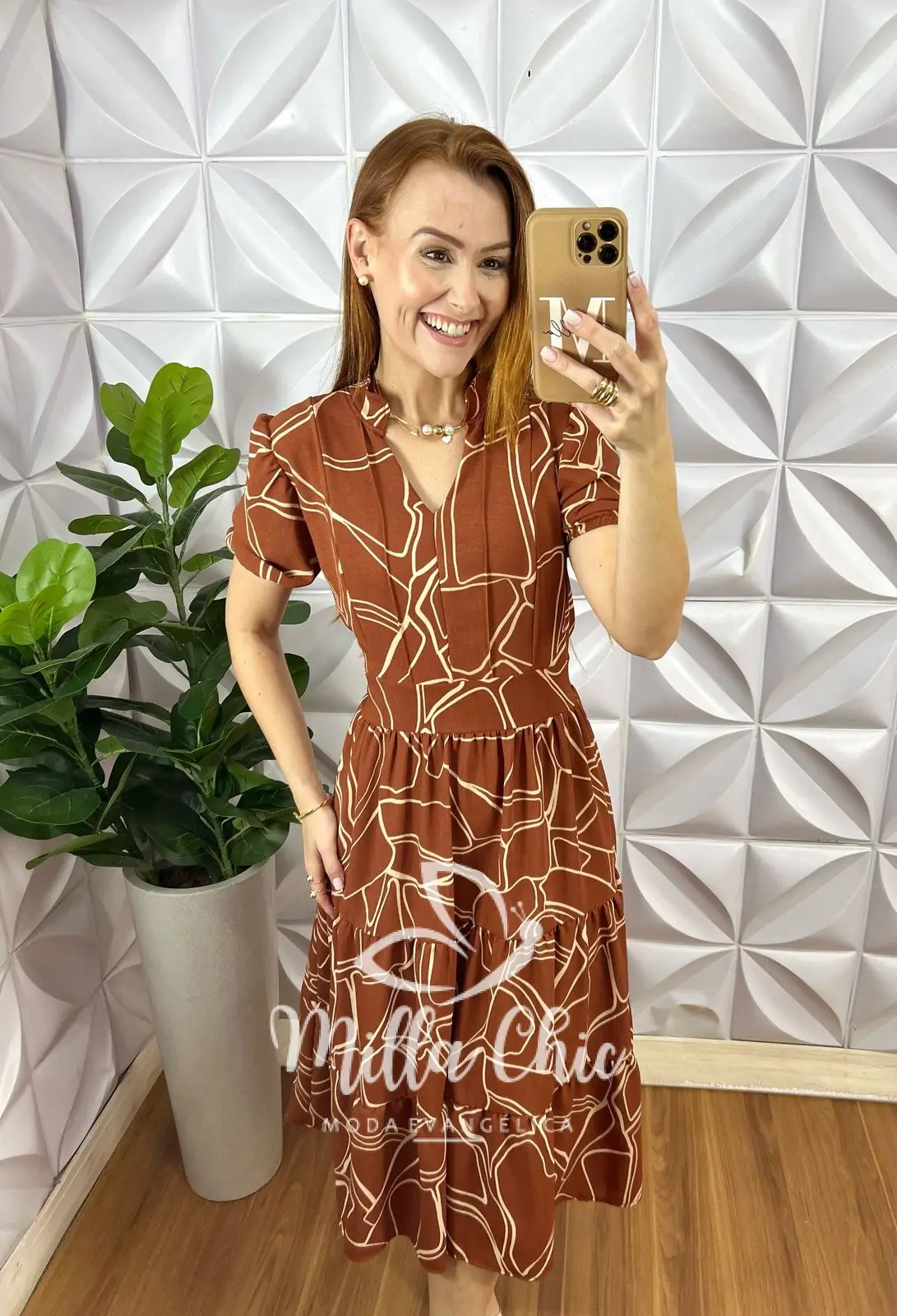 Vestido Otilia Em Crepe Dunnas - Marrom - Milla Chic