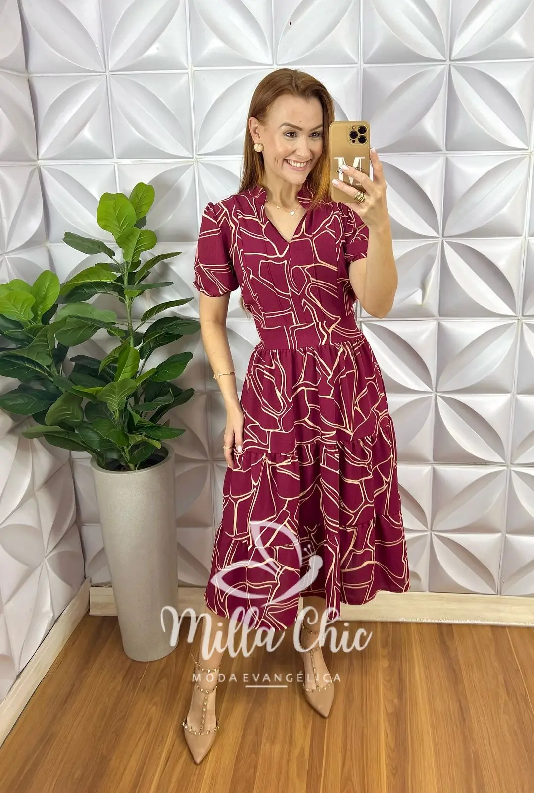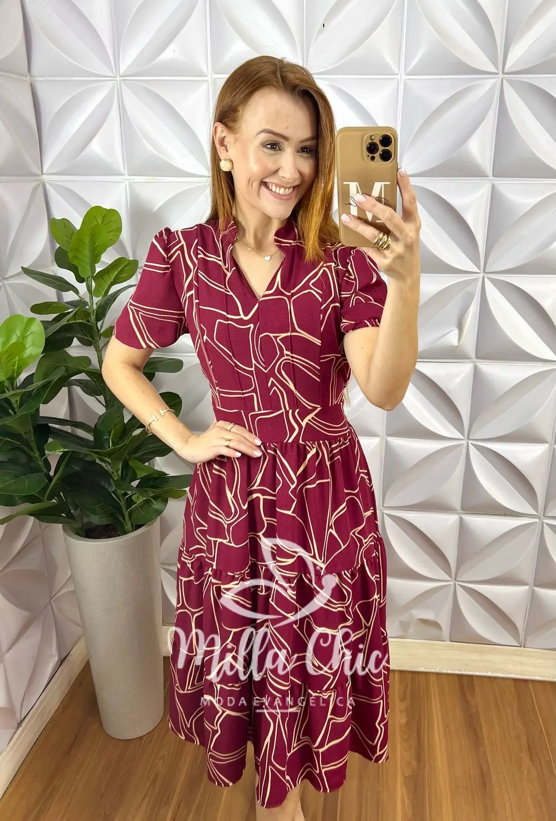 Confeccionado no crepe dunna que é muito confortável e não amarrota . Este vestido possui detalhes únicos a gola alta que é um chame e passa muita elegância os detalhes de prepostados na paete da blusa , a cintura bem marcada e a saia em marias proporcionando um visual atualizado e moderno . Para usar em qualquer ocasião e arrasar .