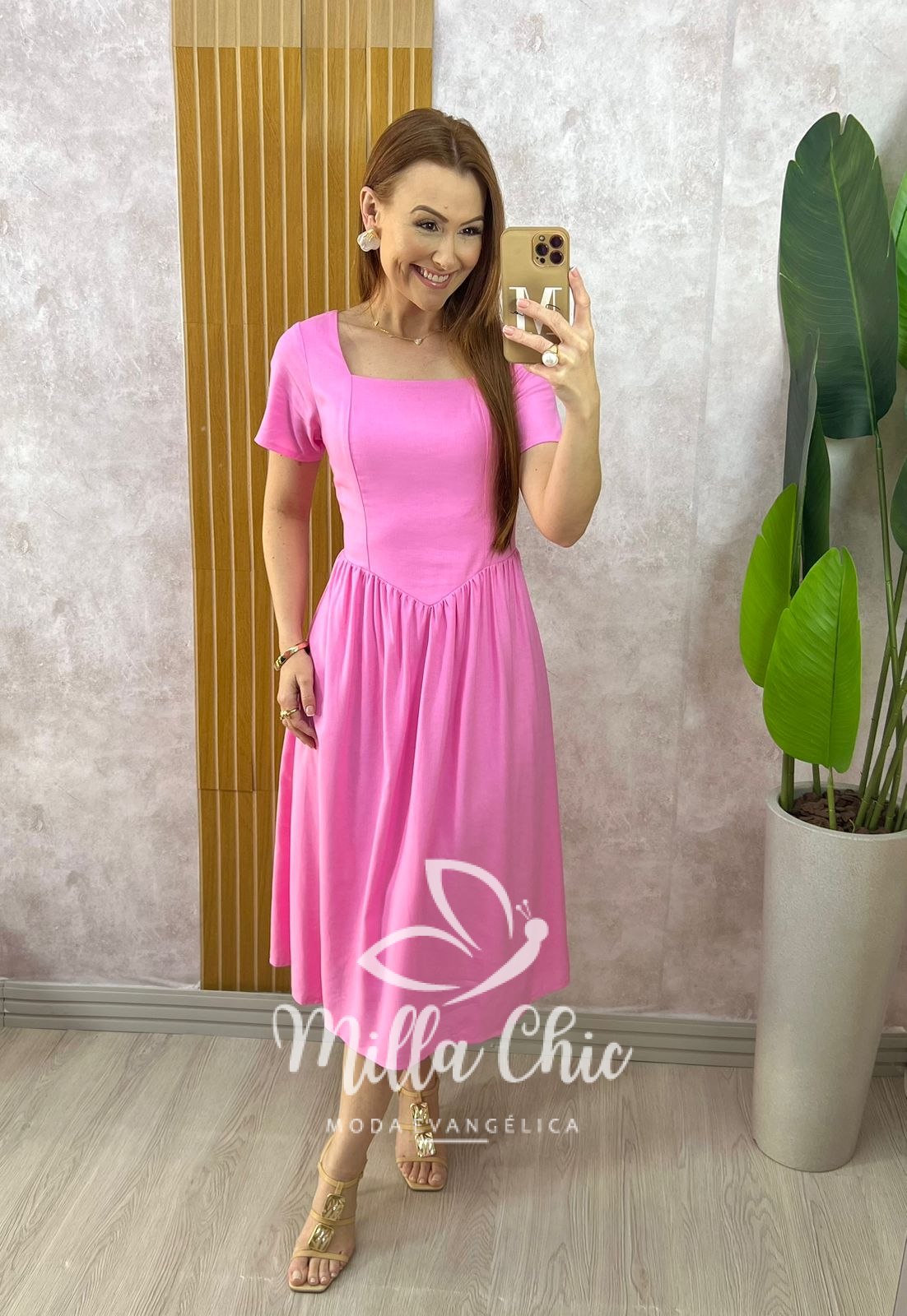 Vestido Pilar em linho com algodão, leve e respirável, com modelagem acinturada com recorte em V na cintura que valoriza a silhueta, enquanto a saia levemente godê traz fluidez. Decote quadrado e mangas curtas completam o visual romântico, fresco e feminino da peça.