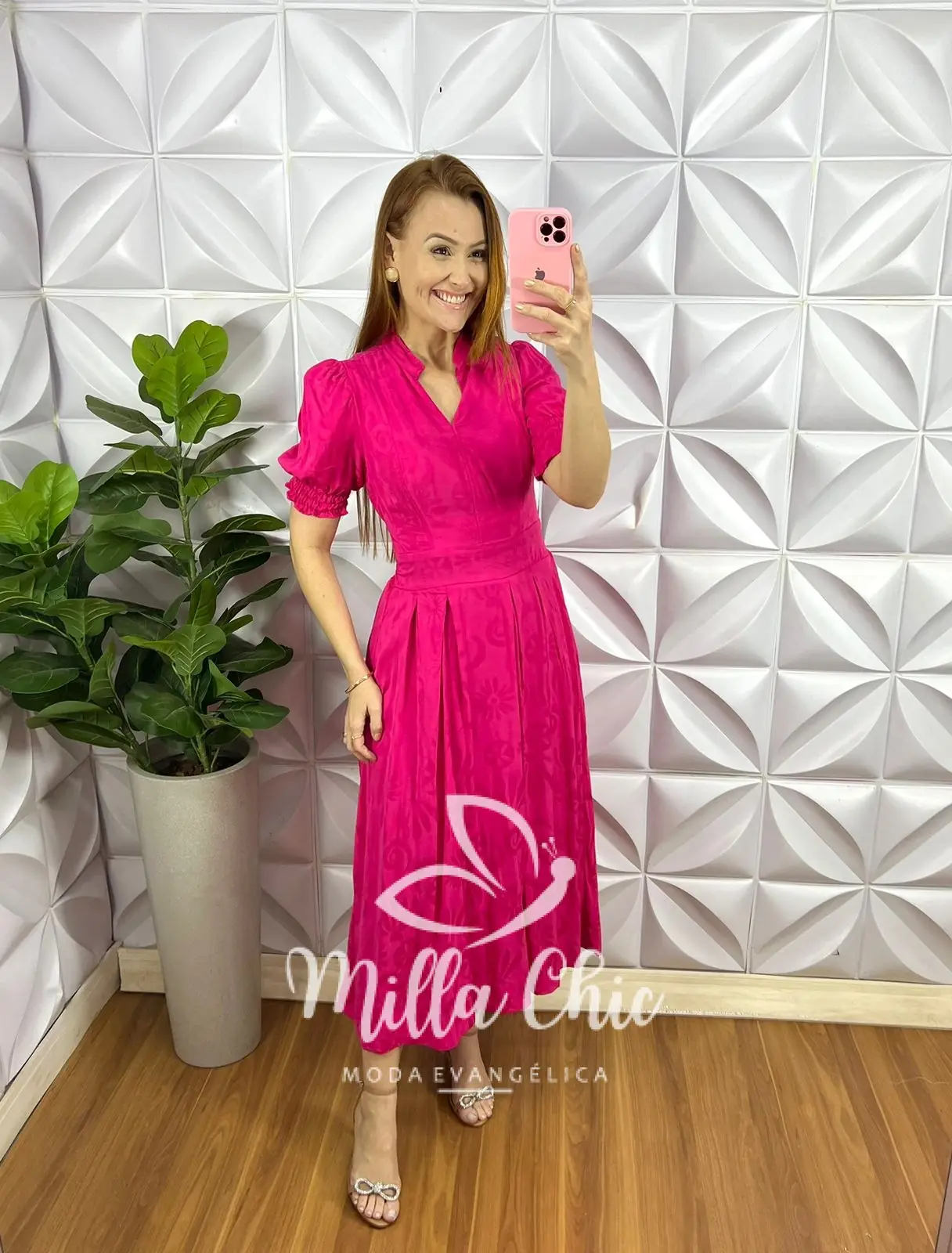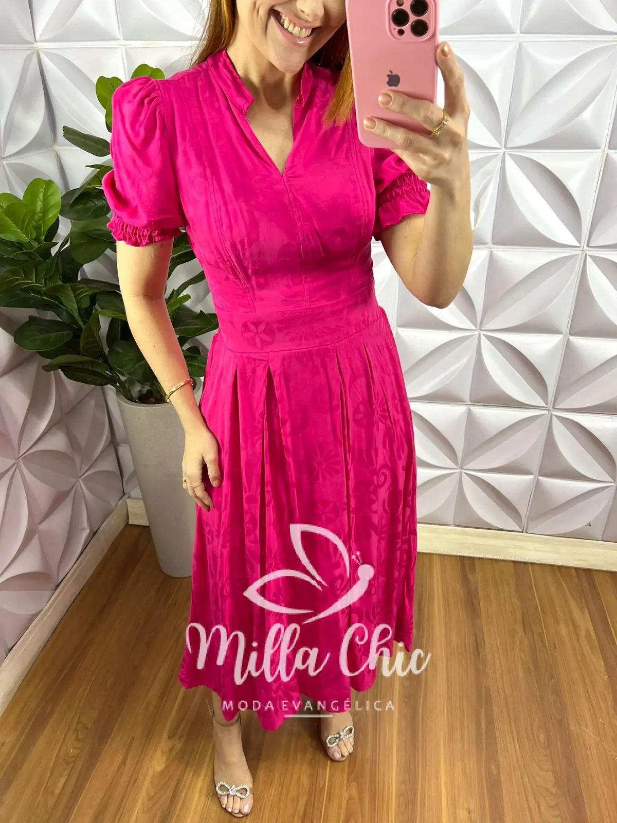 – comprimento Mídi com pregas na saia,