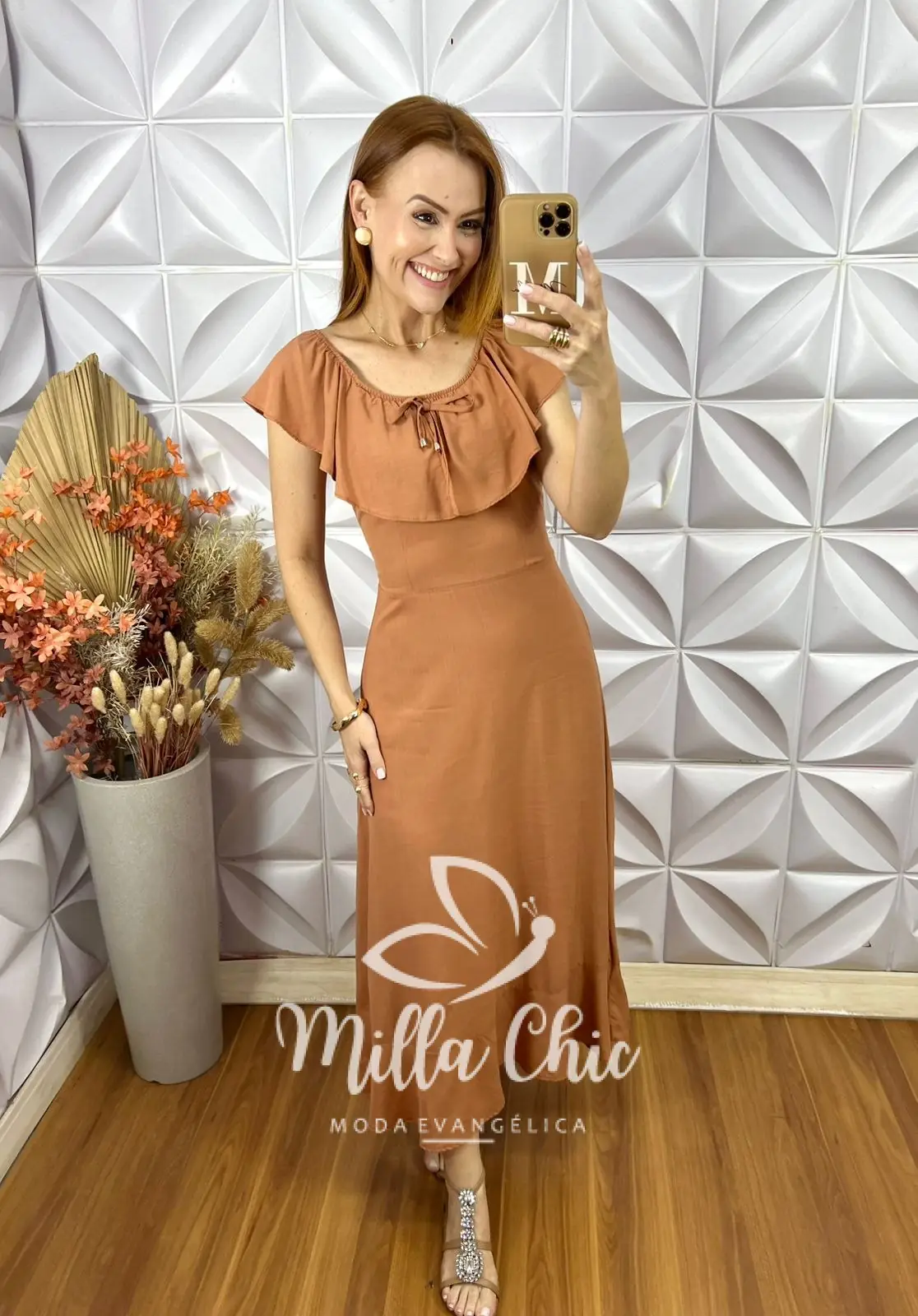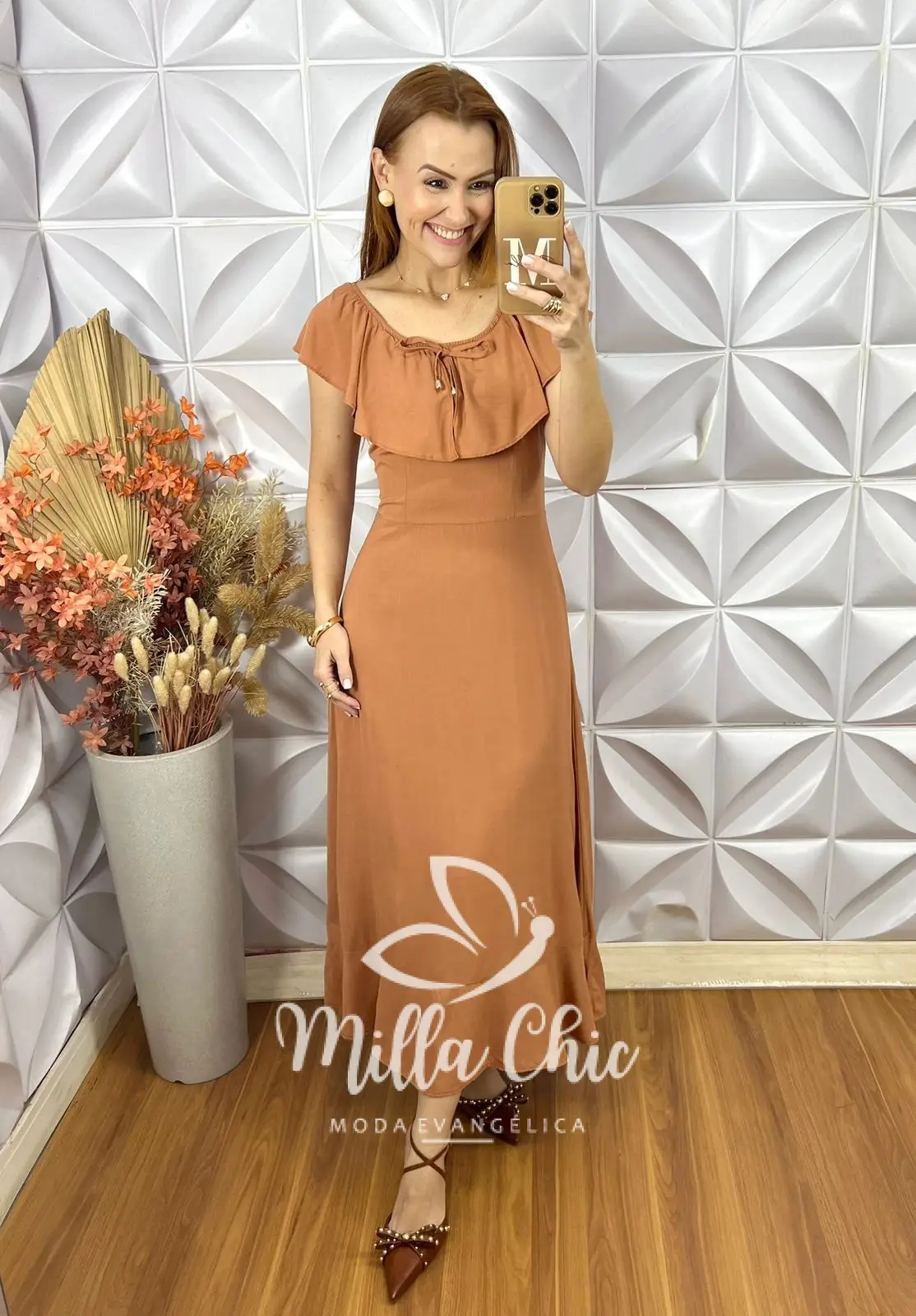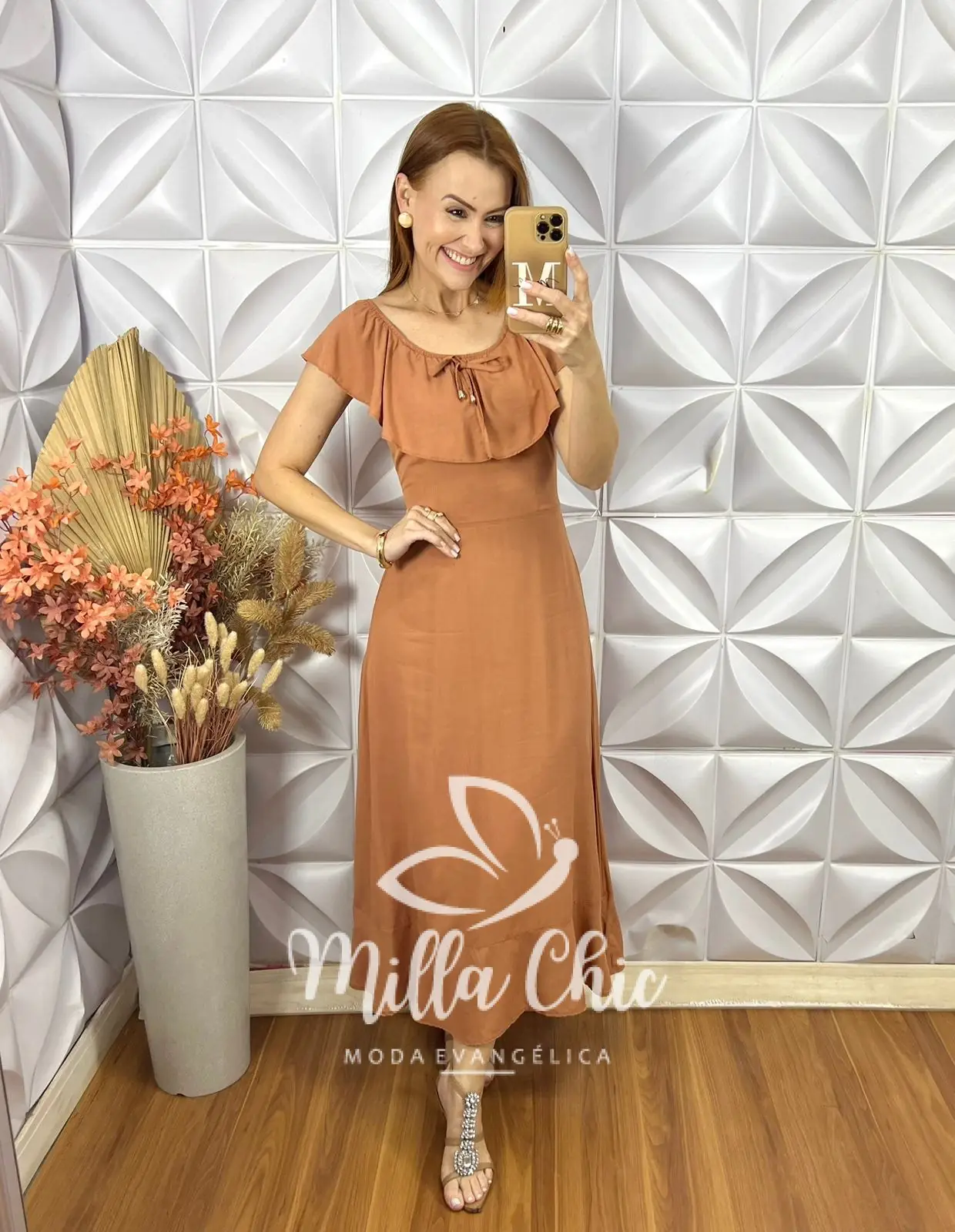 Vestido Rebecca Em Viscolinho - Bege - Milla Chic