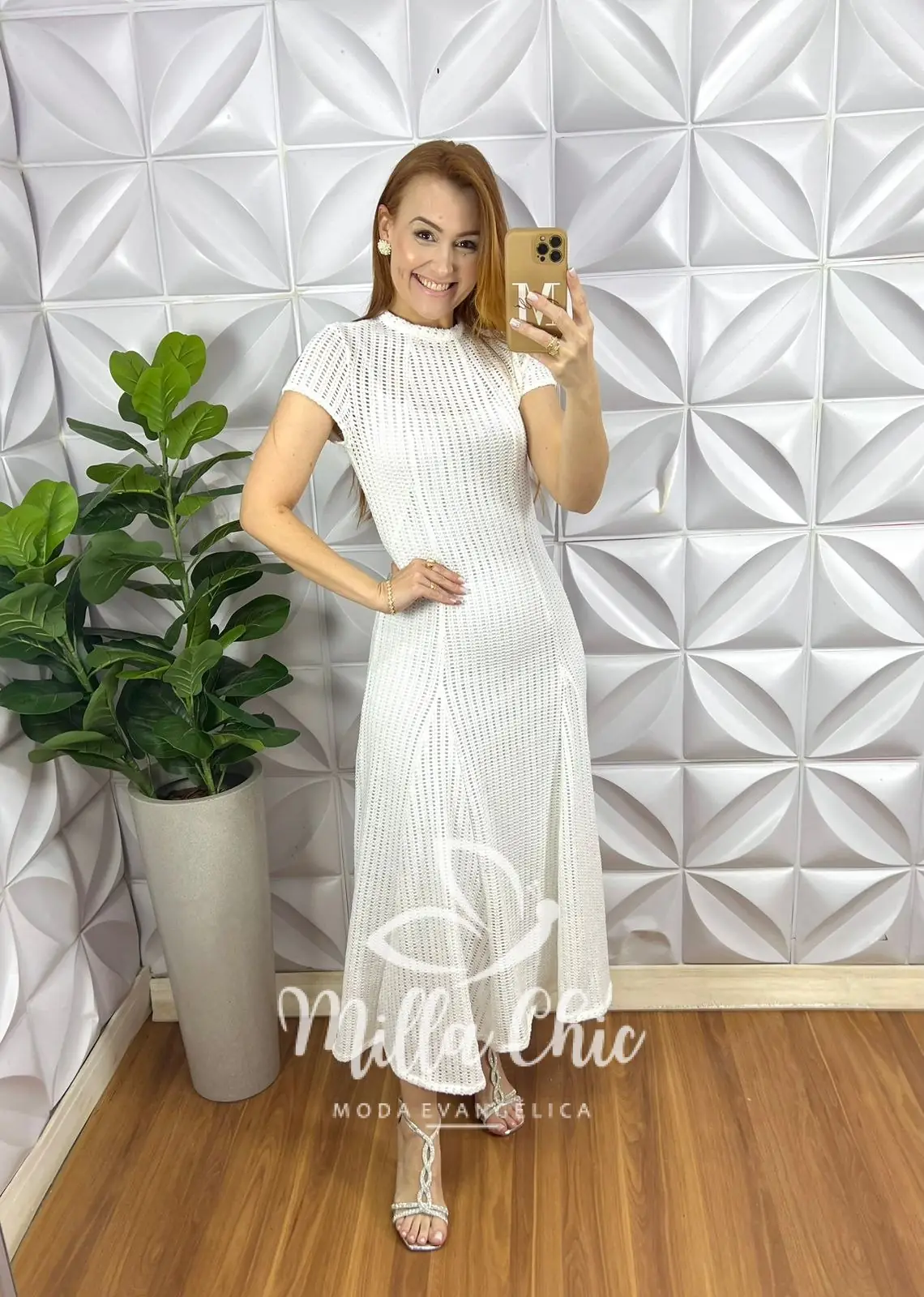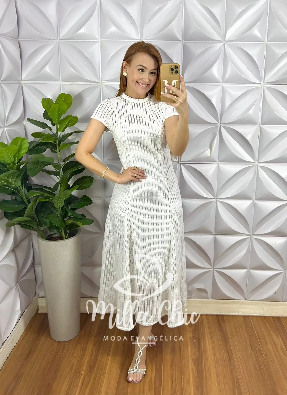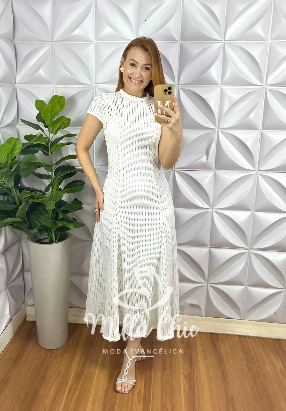 Vestido Renda Crochê Longo Com Forro Camisolinha Simone – Branco