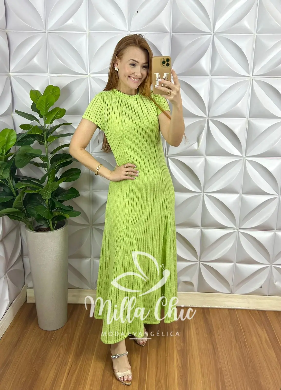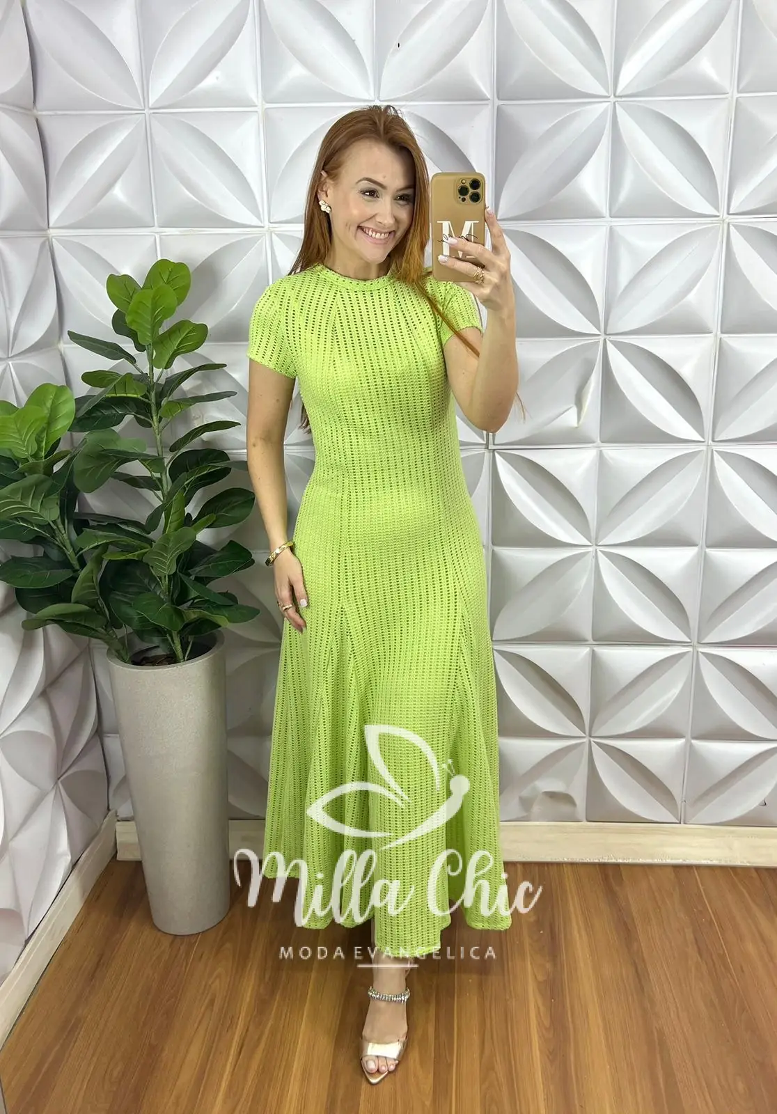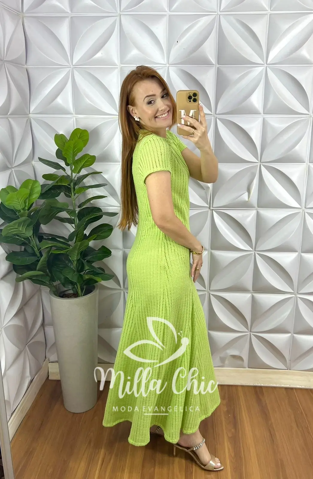 Vestido Renda Crochê Longo Com Forro Camisolinha Simone – Verde