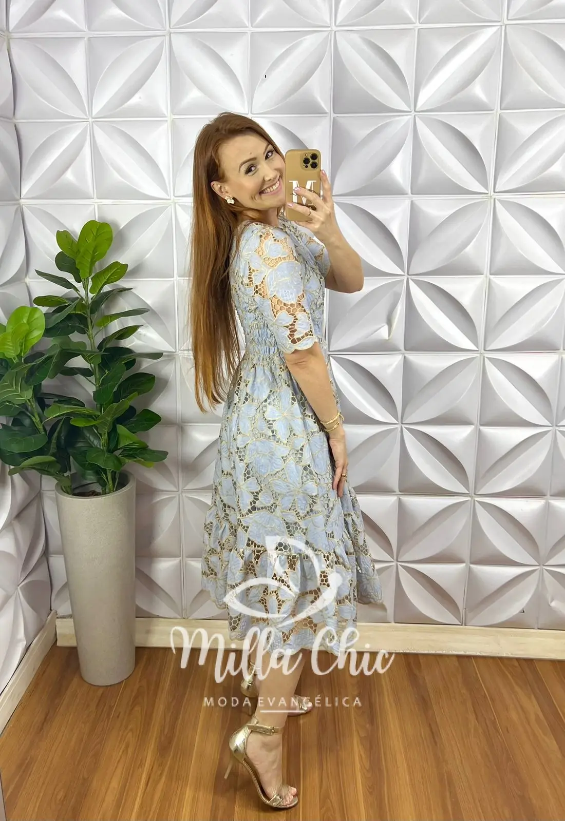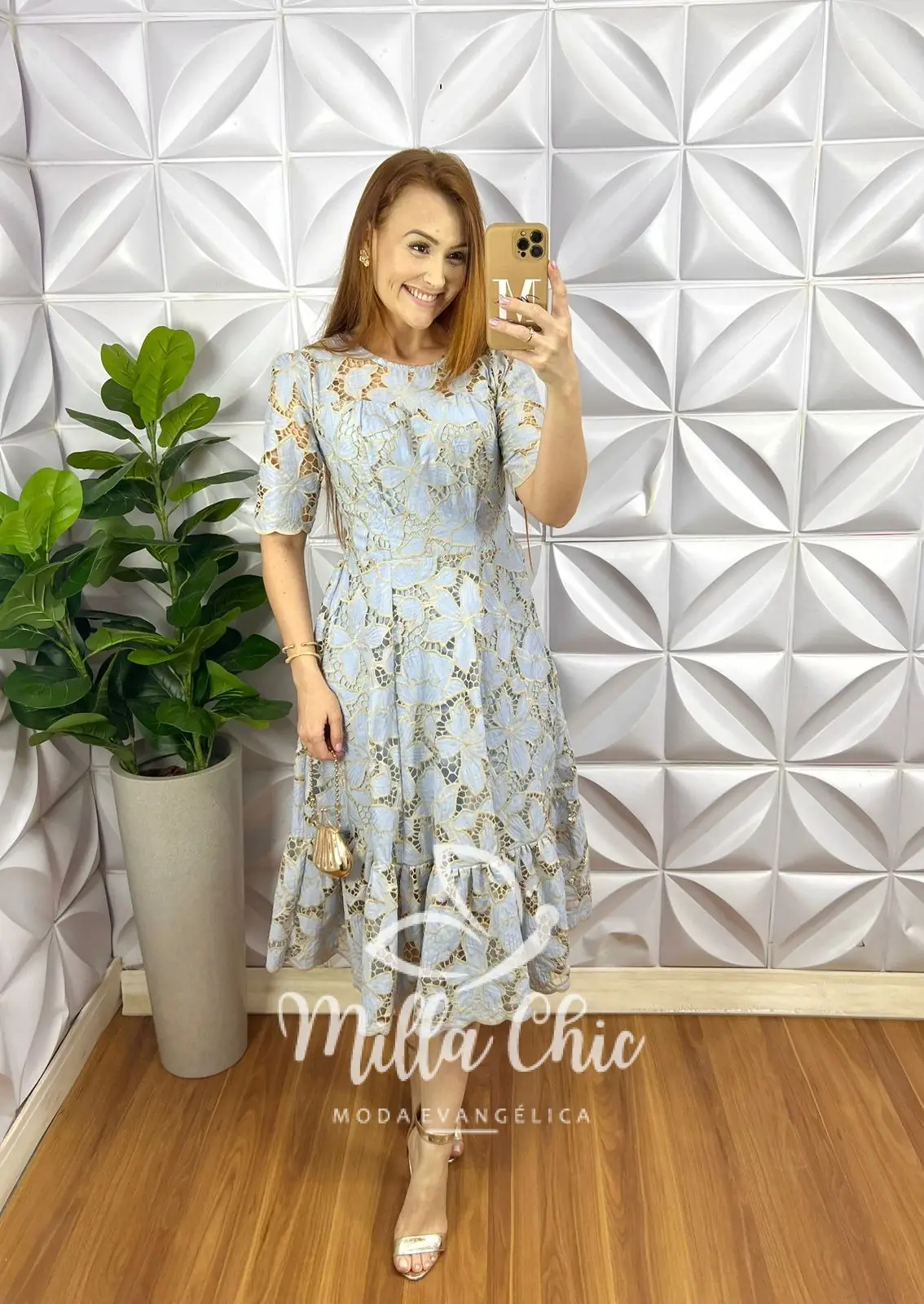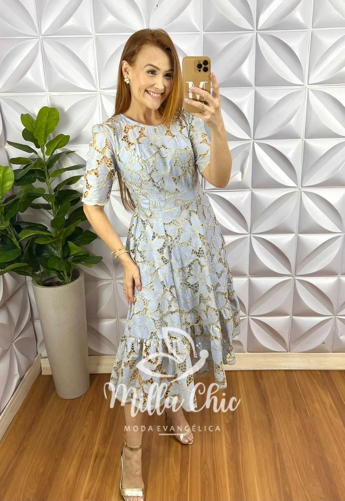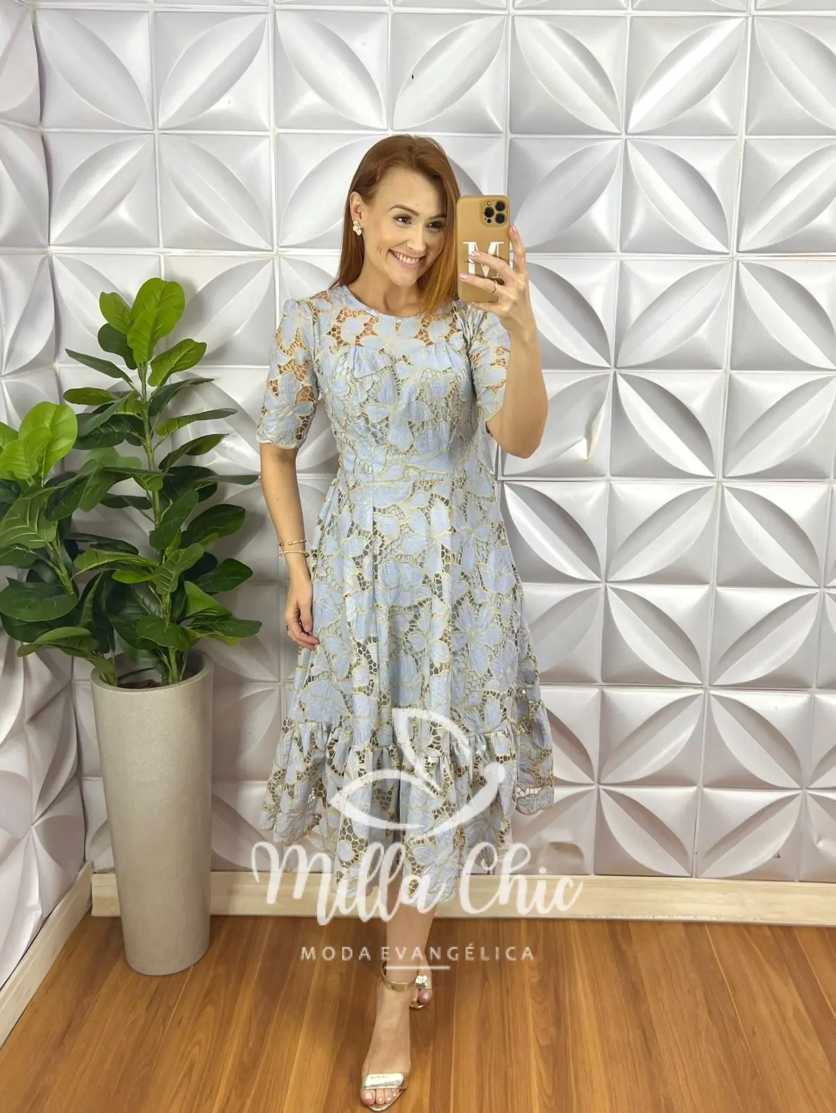 Vestido Richilieu Bordado tecido que traz delicadeza e romantismo para o look! Com bordados Em alto relevo floral que esta um charme!