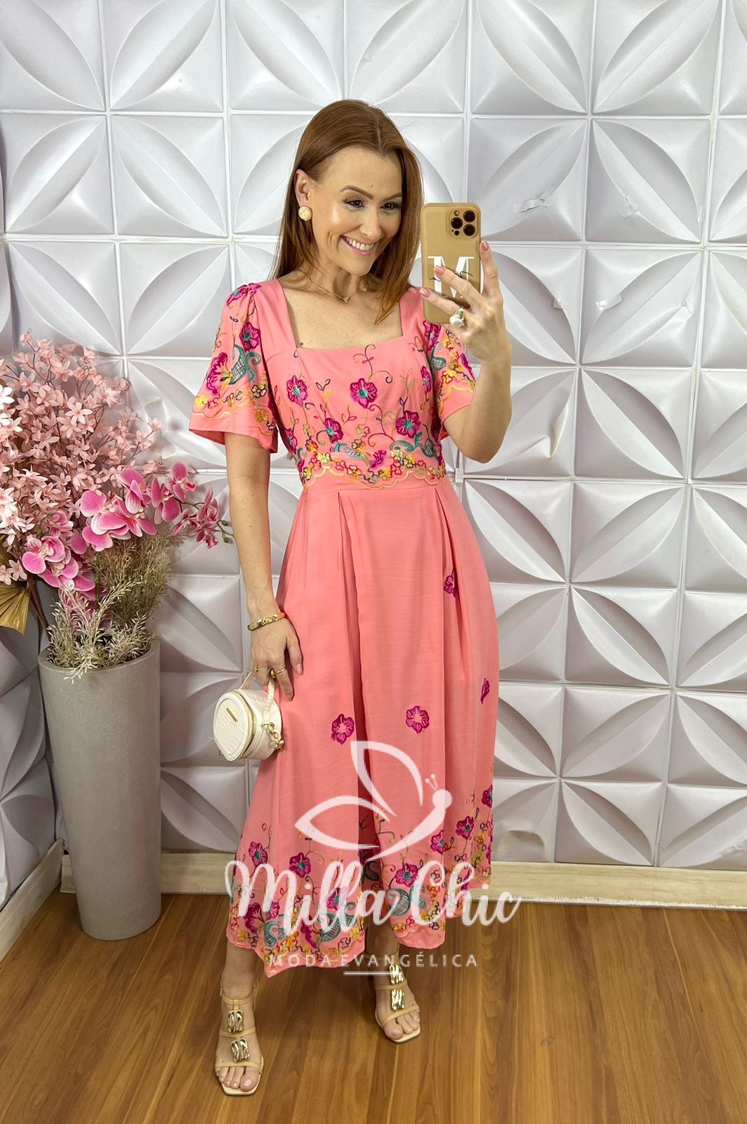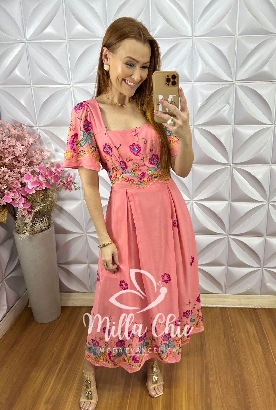 Vestido Santorini Bordado - Pêssego - Milla Chic