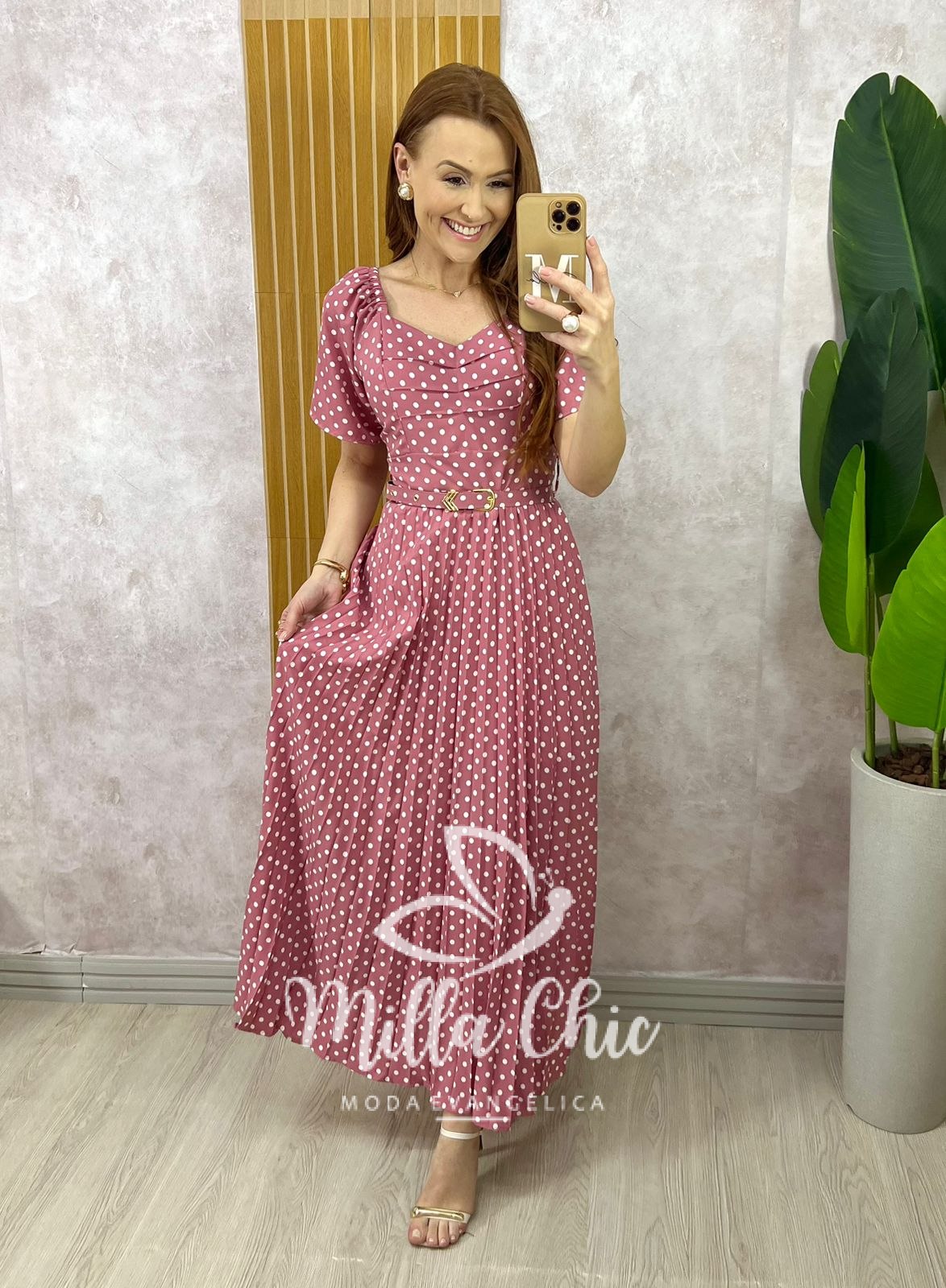 Vestido Sevilha em póa em duas cores lindas . Um clássico ! Perfeito para todas as ocasiões, com aquele toque que transforma um momento simples em memórias incríveis! O vestido Sevilha é confeccionado em alfaiataria . Aquele clássico vestido que não cai de moda e vai te deixar linda e elegante em qualquer ocasião. Um tecido grosso mais fluido . A saia é toda plissada e acompanha o cinto encapado . Uma composição pensada com todo cuidado para valorizar e torná-lo ainda mais especial! Ainda possui: forro, decote coração com leve nervuras e bojo que te valoriza , corpinho estruturado, cintura marcada , saia plissada e um caimento impecável.