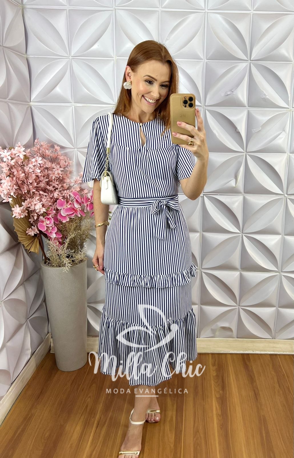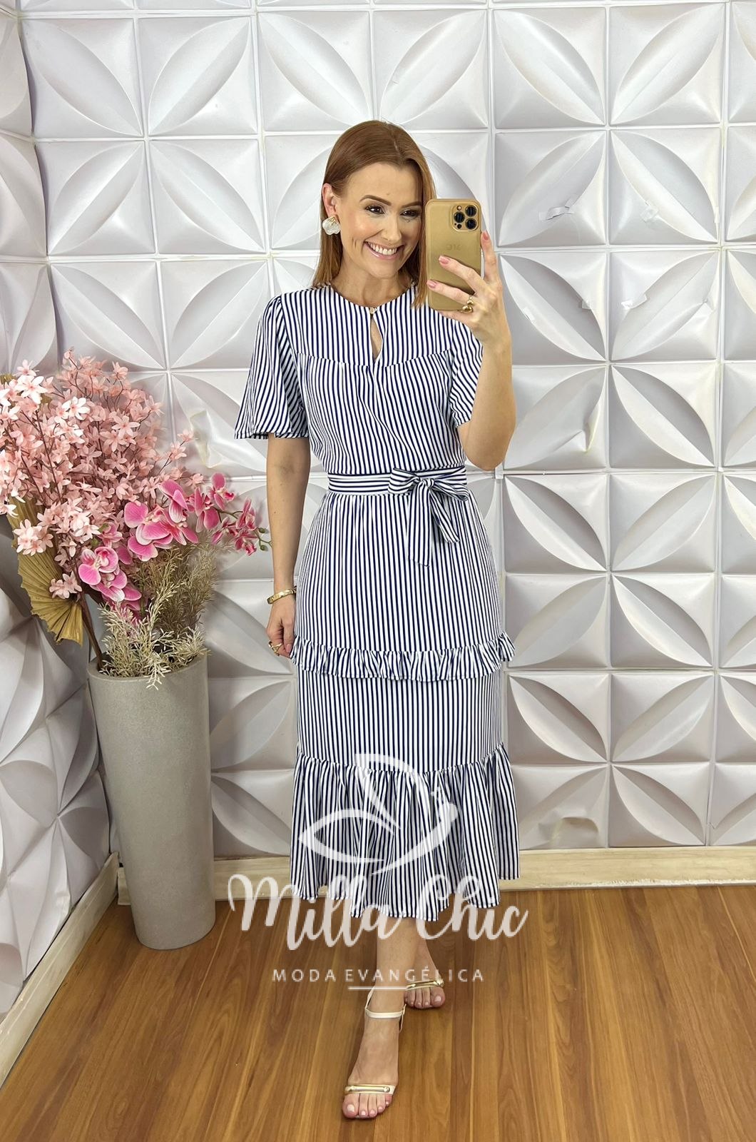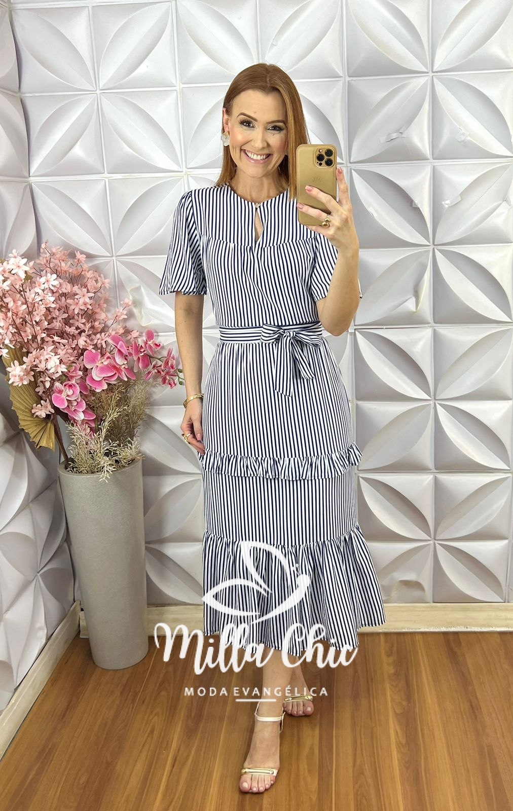 Vestido Sicília em Viscolinho Listrado - Roxo - Milla Chic
