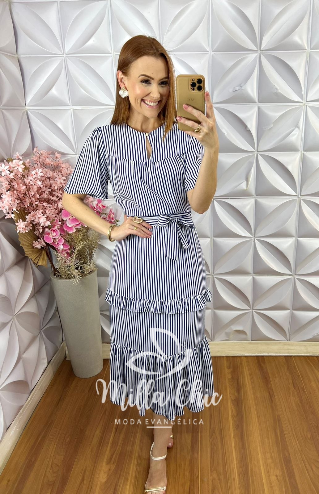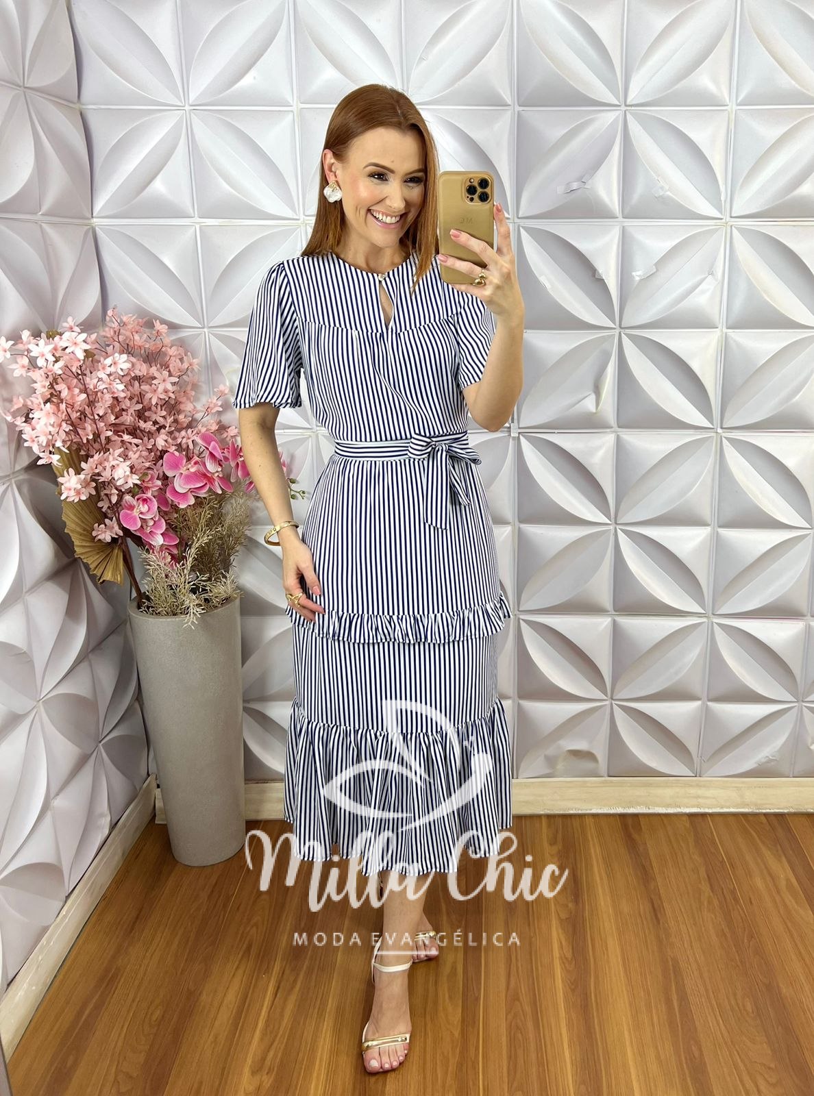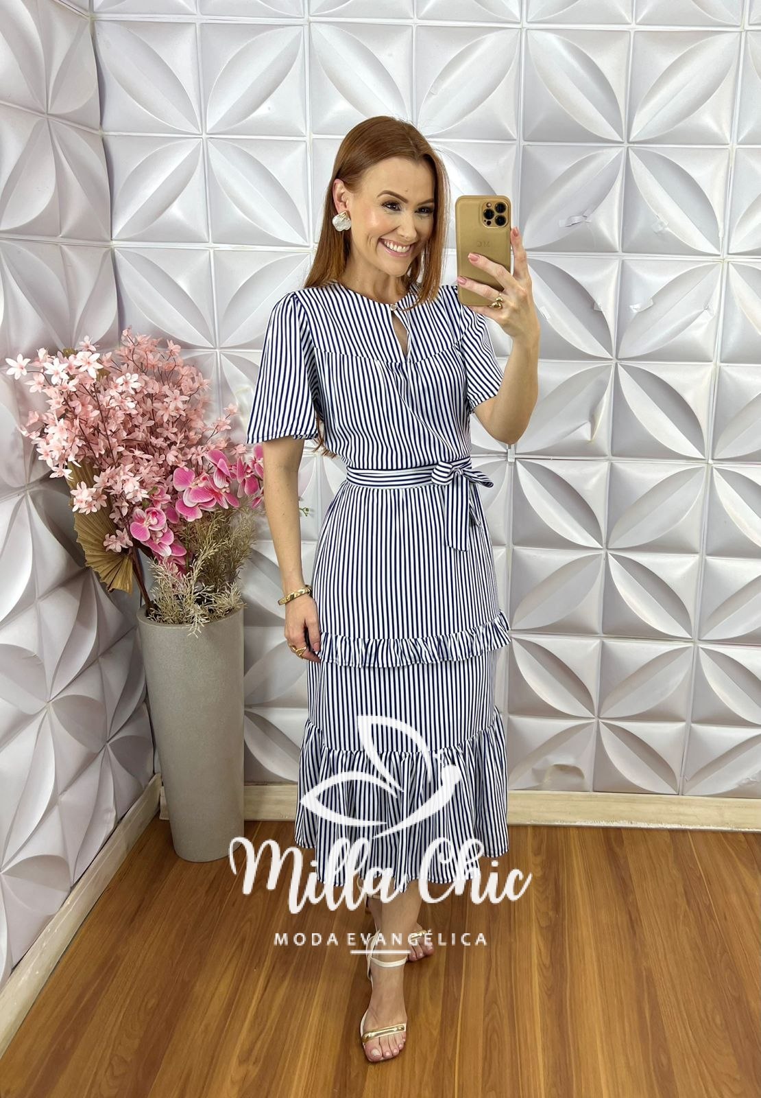 Vestido Sicília em Viscolinho Listrado - Roxo - Milla Chic