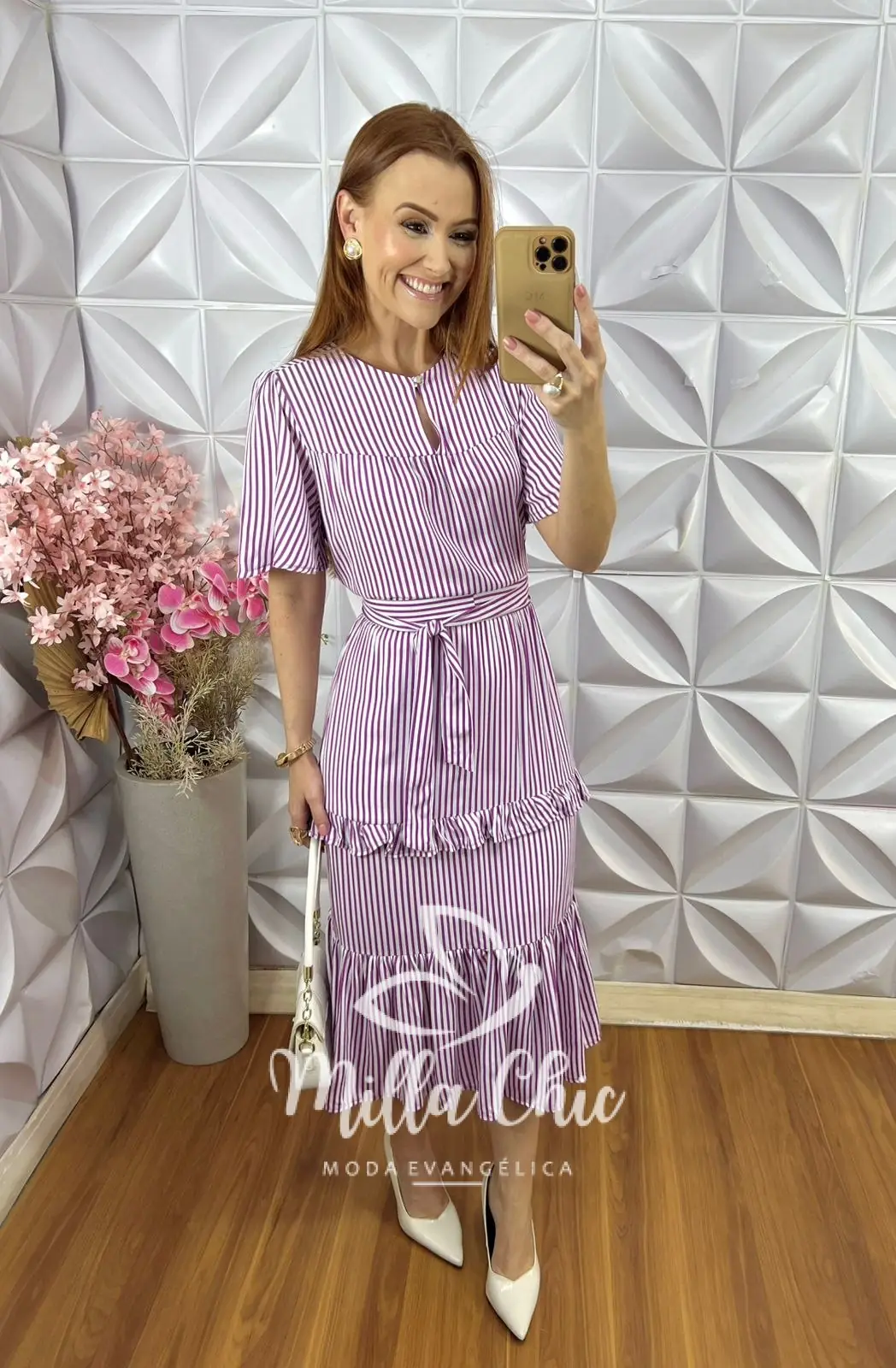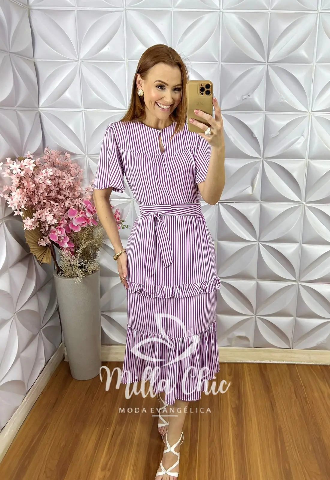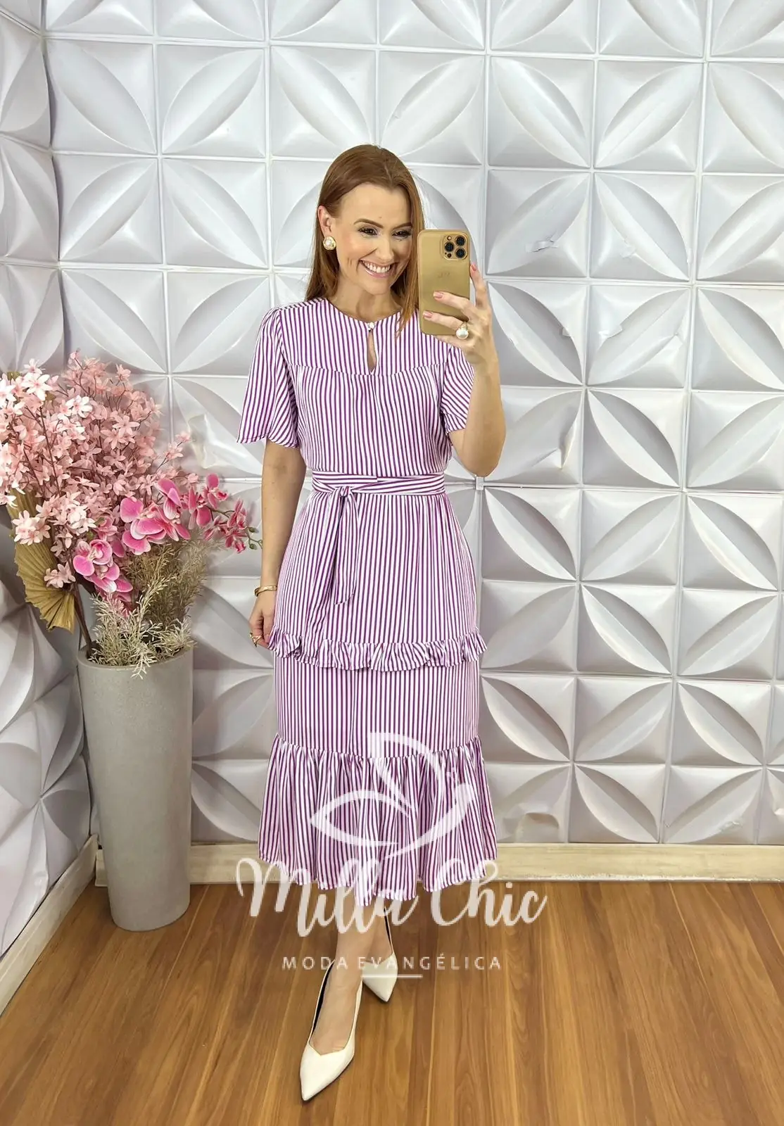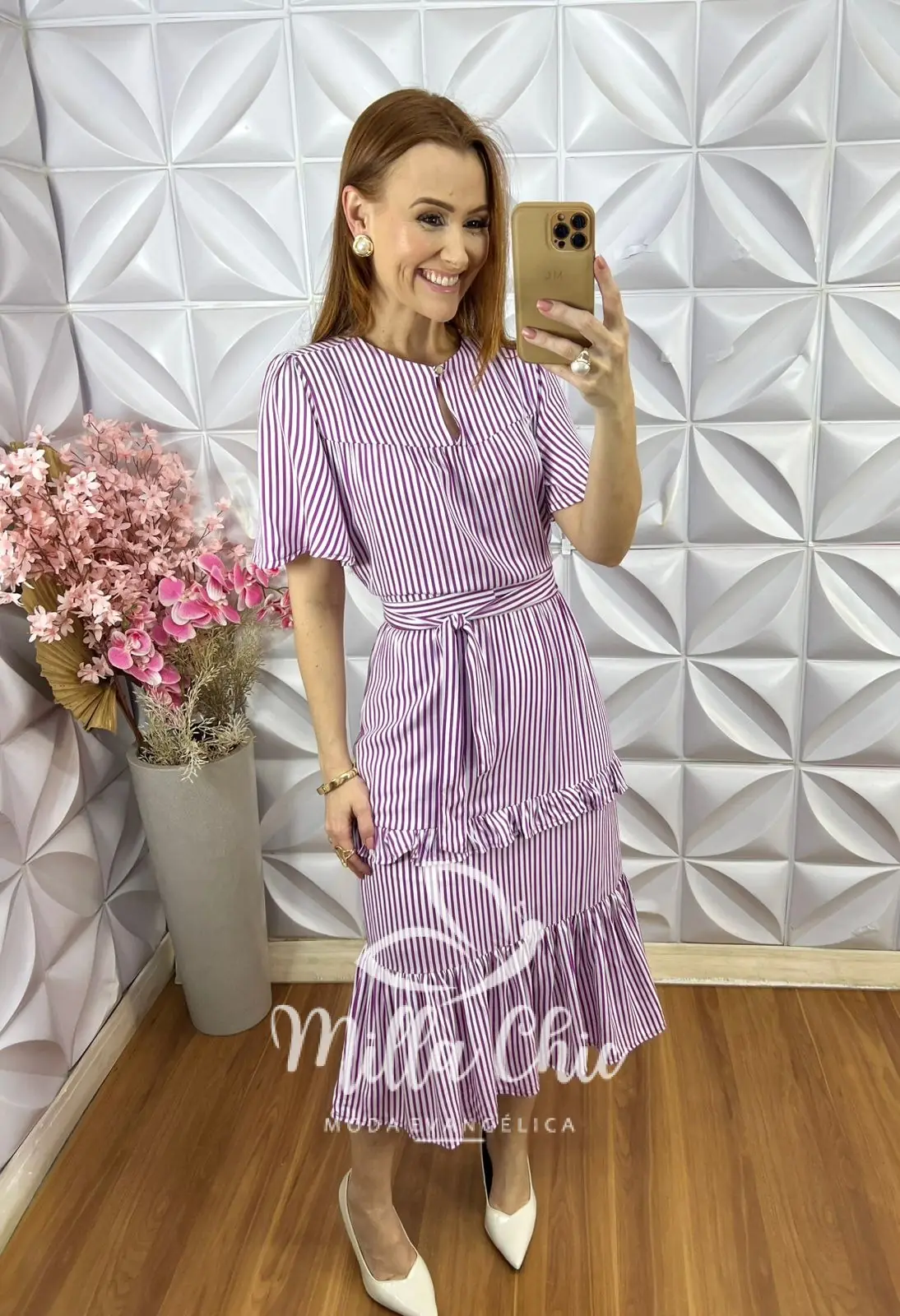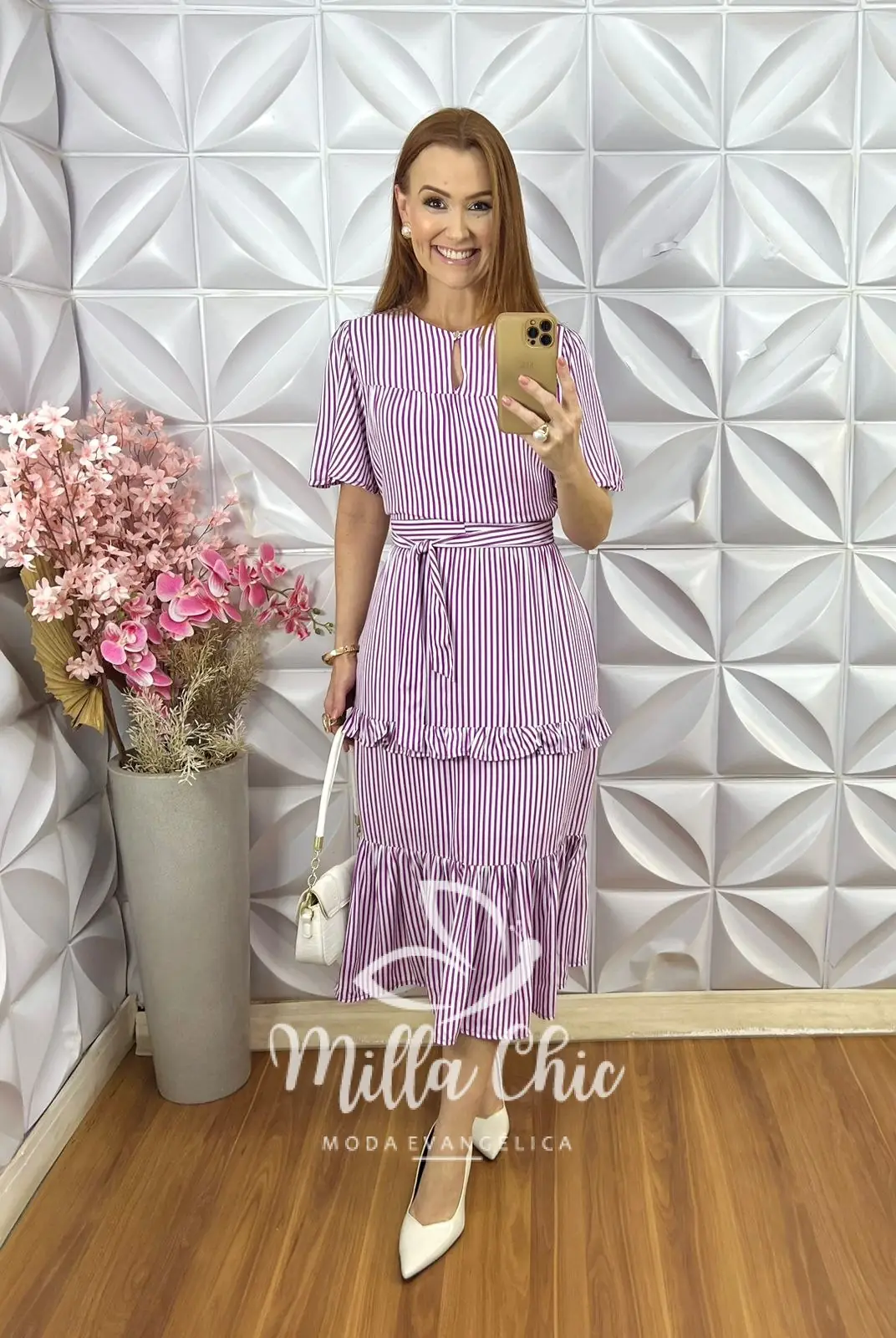 Vestido Sicília em Viscolinho Listrado - Roxo - Milla Chic