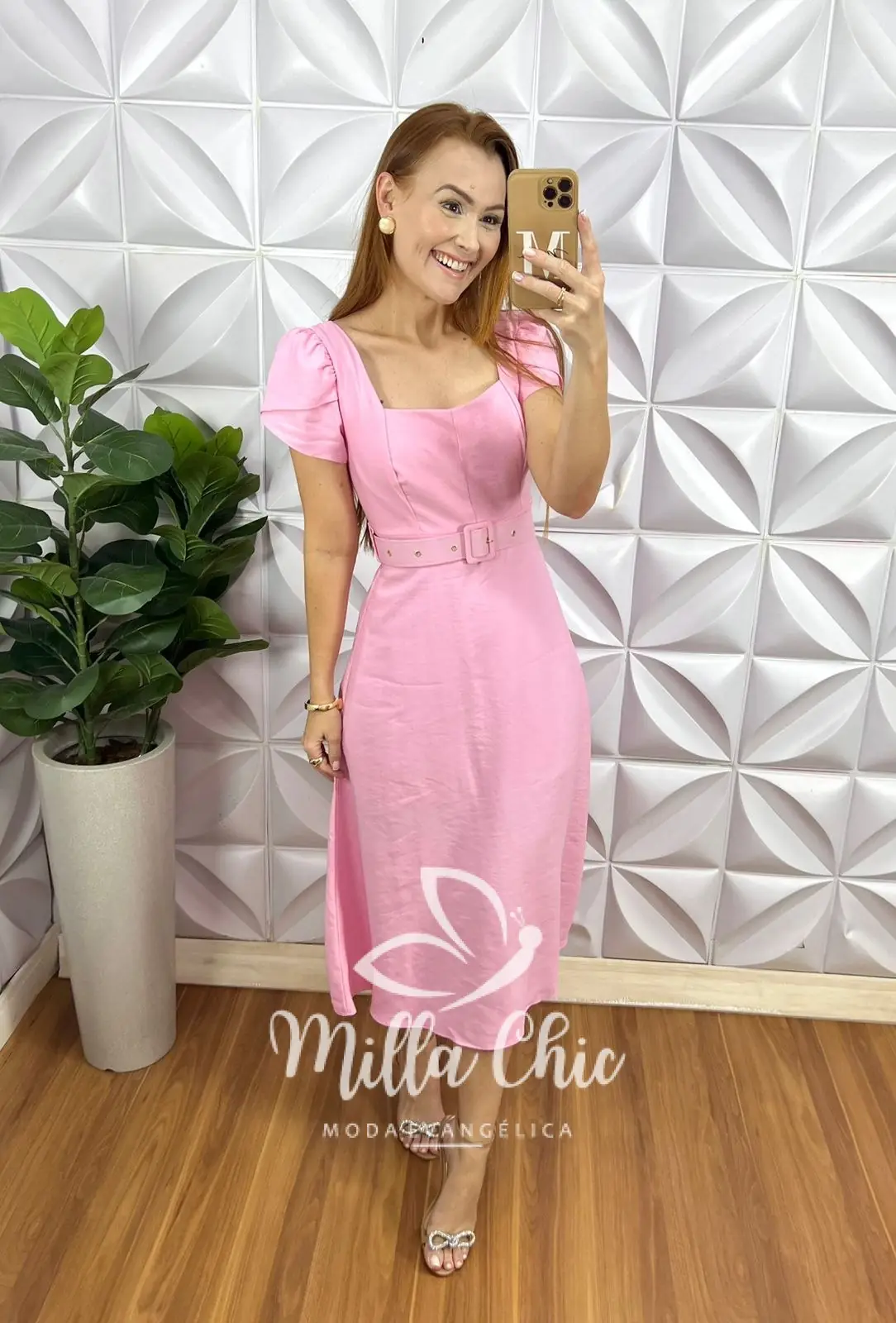 Nosso vestido sonho Rosa . Chic, delicado e bem feminino . Todo confeccionado no tecido alfaiataria marrant . É um tecido mais grossinho maia com um caimento perfeito e leve.