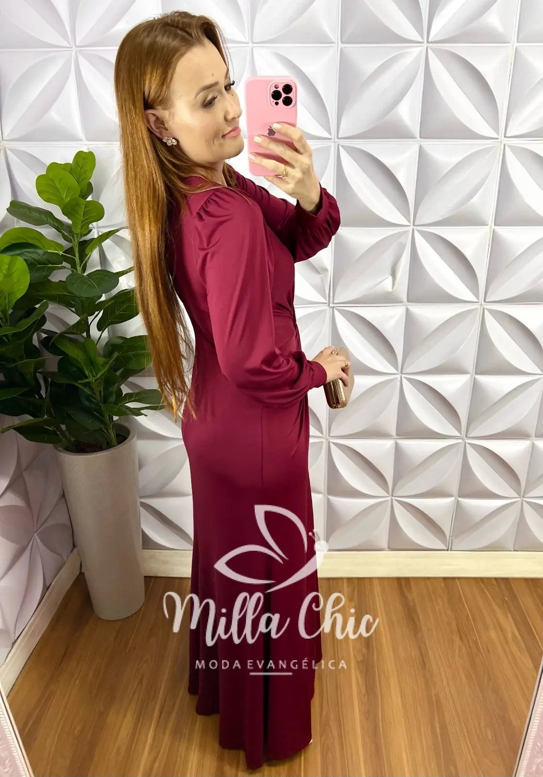 Vestido Viscolinho Lastex Manga Longa Mídi Carla - Terra Cota - Milla Chic