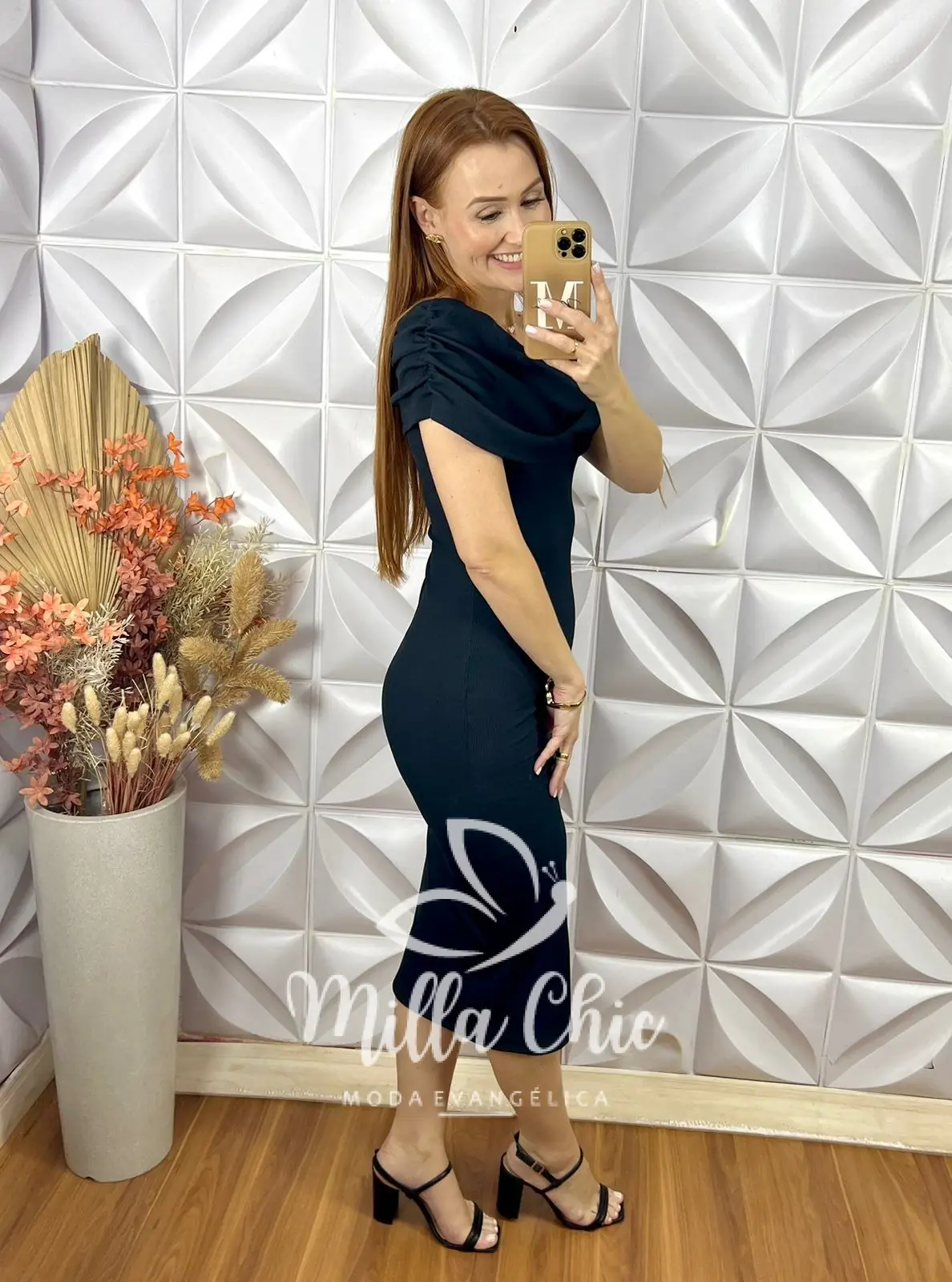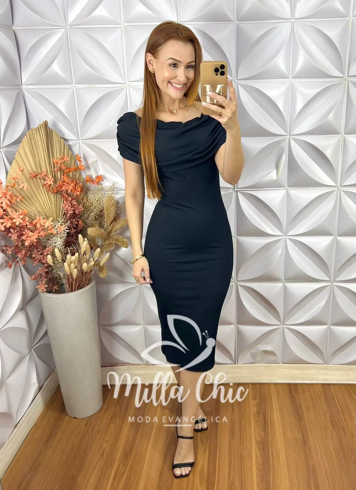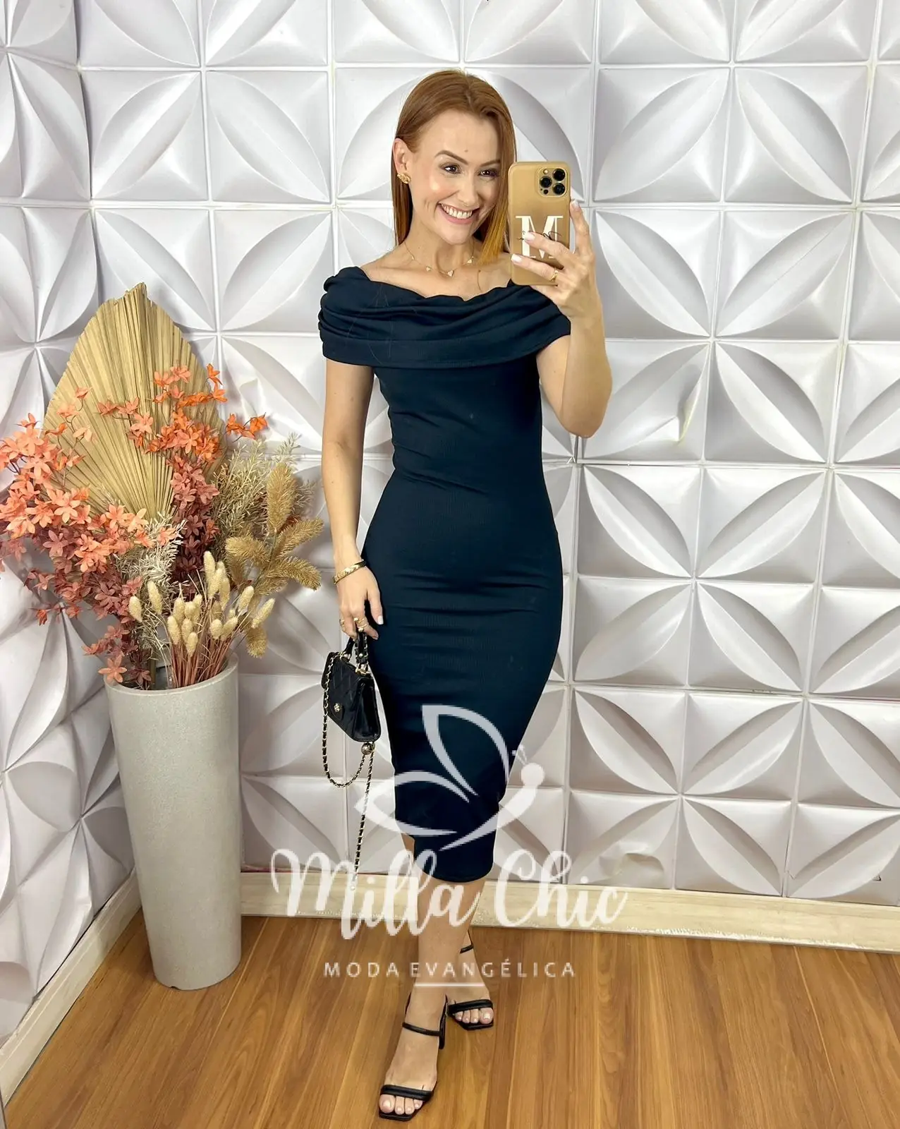 com elegância. Seu corte versátil conta com mangas ombro a ombro e bojo que passa uma elegância e um charme sem igual . Aquele clássico vestido justo super versátil que vai do tênis ao scarpin