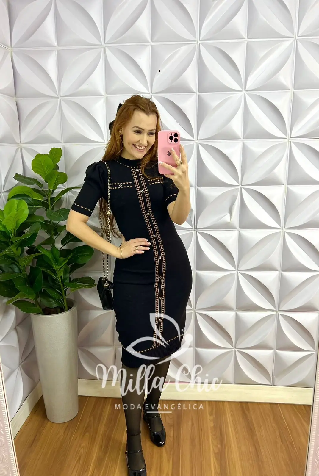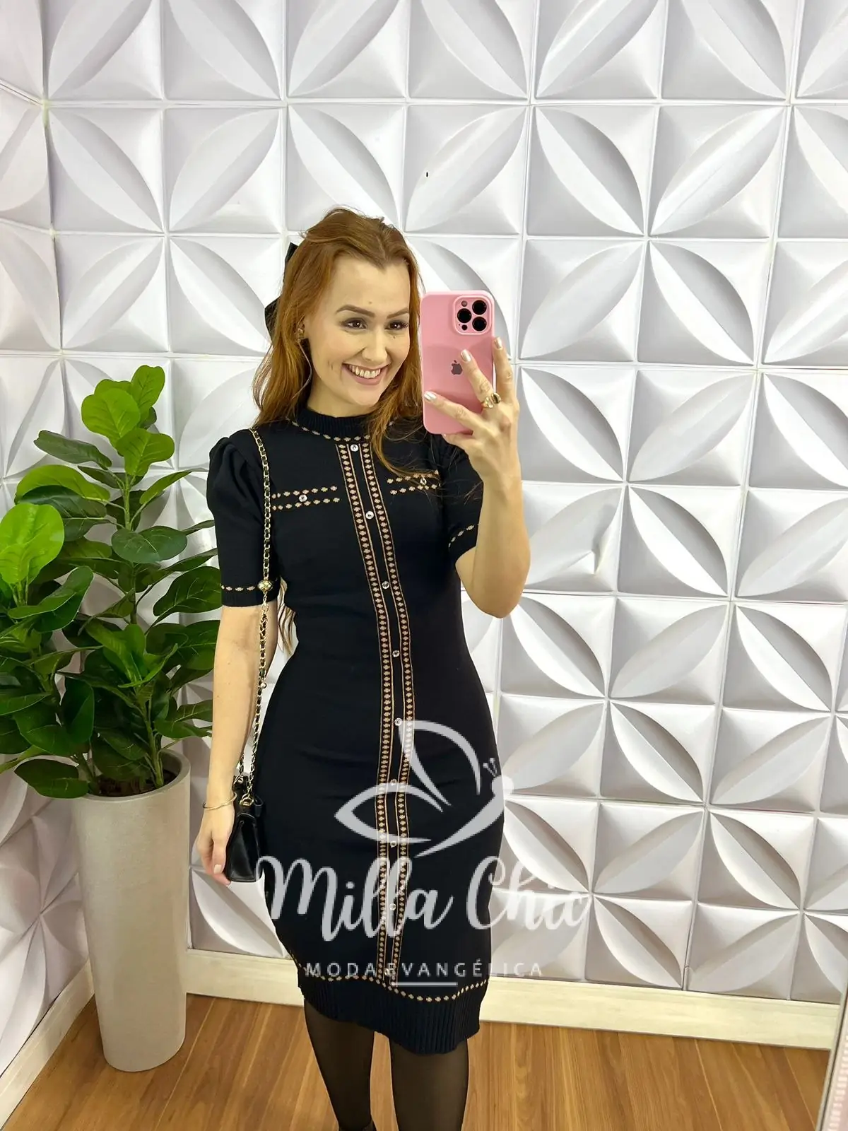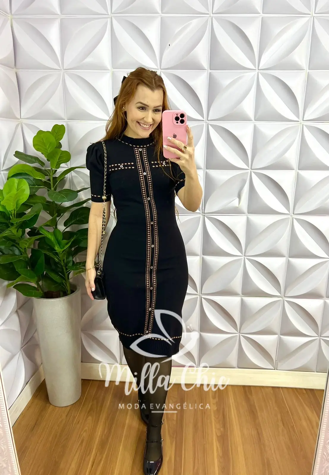 Vestido Tricô Justo Com Botões Dourados Mia - Preto - Milla Chic