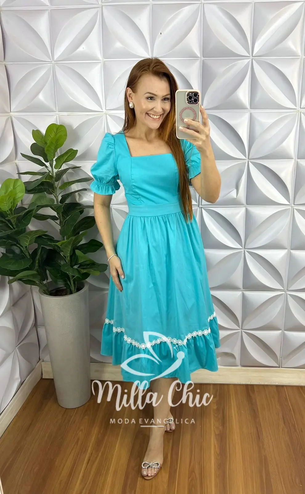 Vestido Todo confeccionado no Tricoline um tecido maravilhoso! Com estampa que esta um charme!