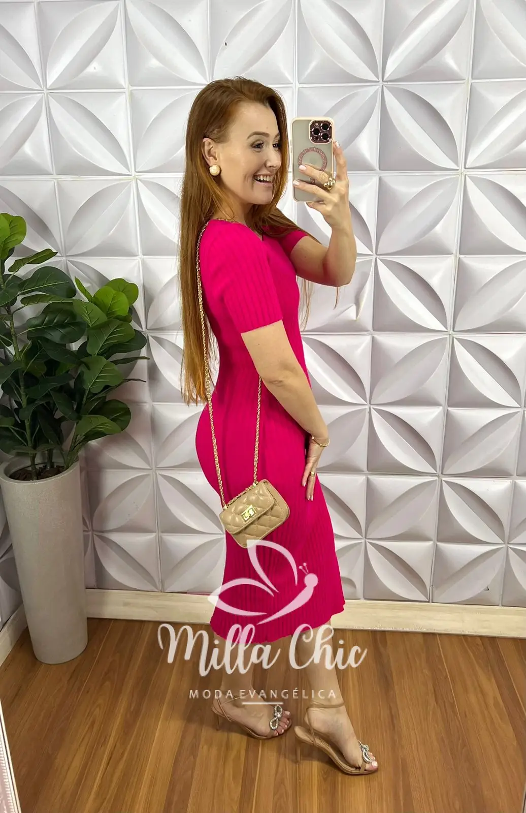 Vestido Tricot Mídi Com Fenda Lateral Layana – Pink