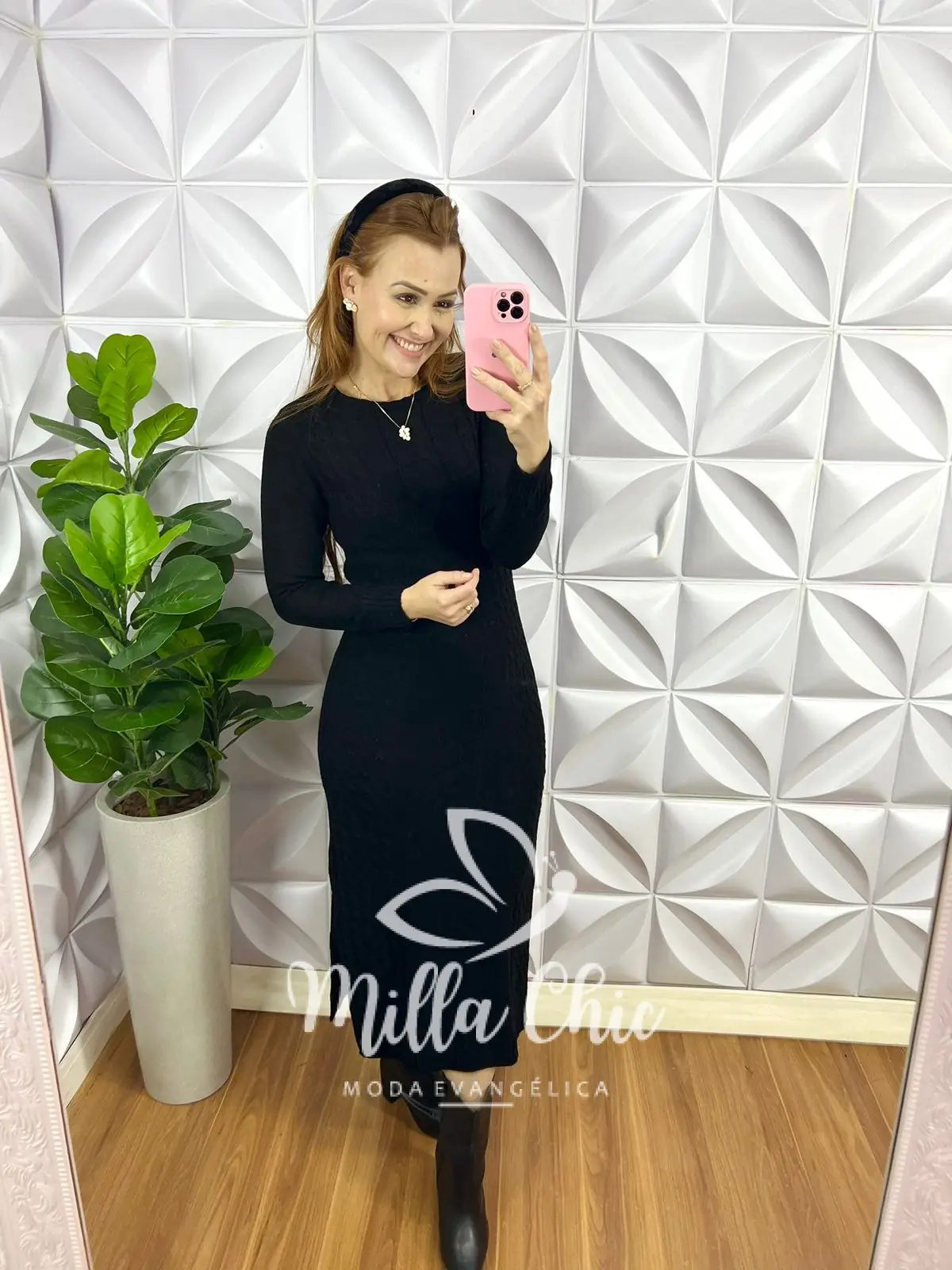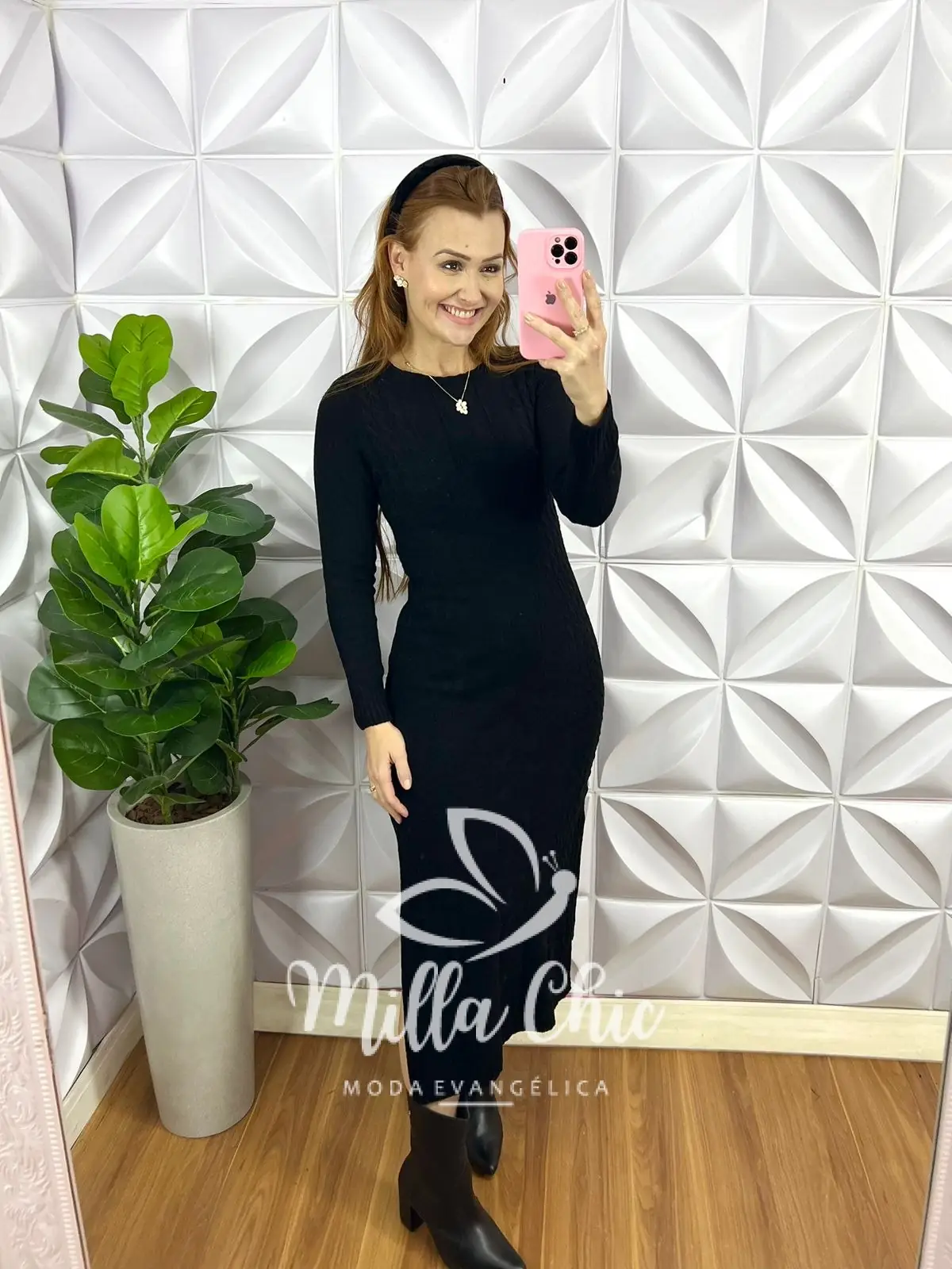 Vestido Tricot Mouse Justo Com Fenda Longo Giovany - Preto - Milla Chic
