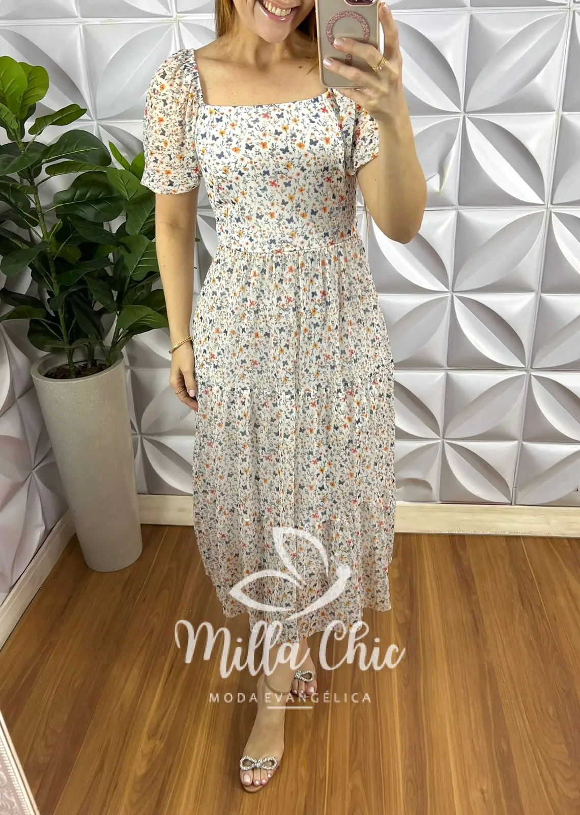 Vestido Todo confeccionado no tule tecido maravilhoso! delicado e com caimento fluido estampa floral que esta um charme!