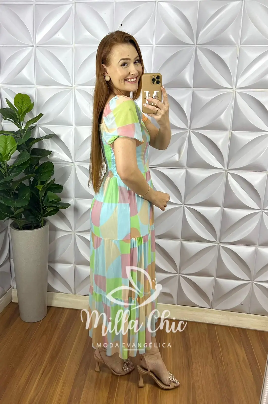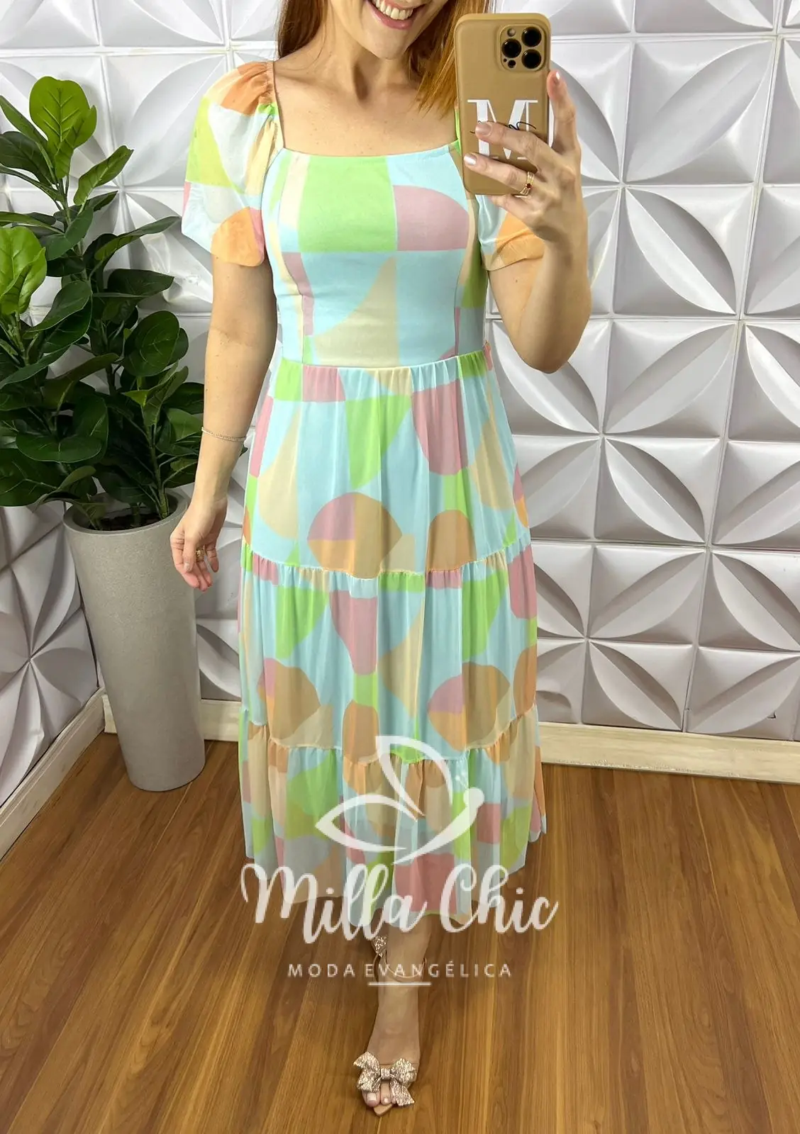 Vestido Todo confeccionado no tule tecido maravilhoso! delicado e com caimento fluido estampa floral que esta um charme!