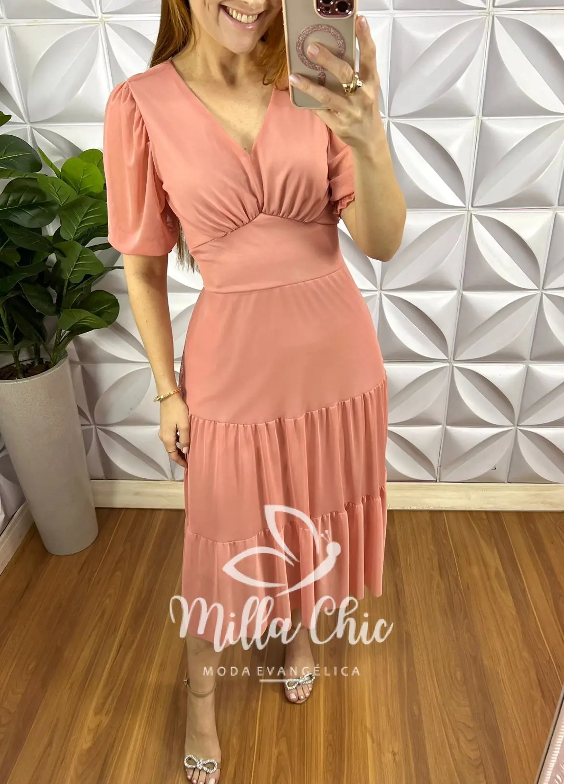 Vestido Tule Decote V Pala Na Cintura Três Marias Manga Princesa Sandra – Rose