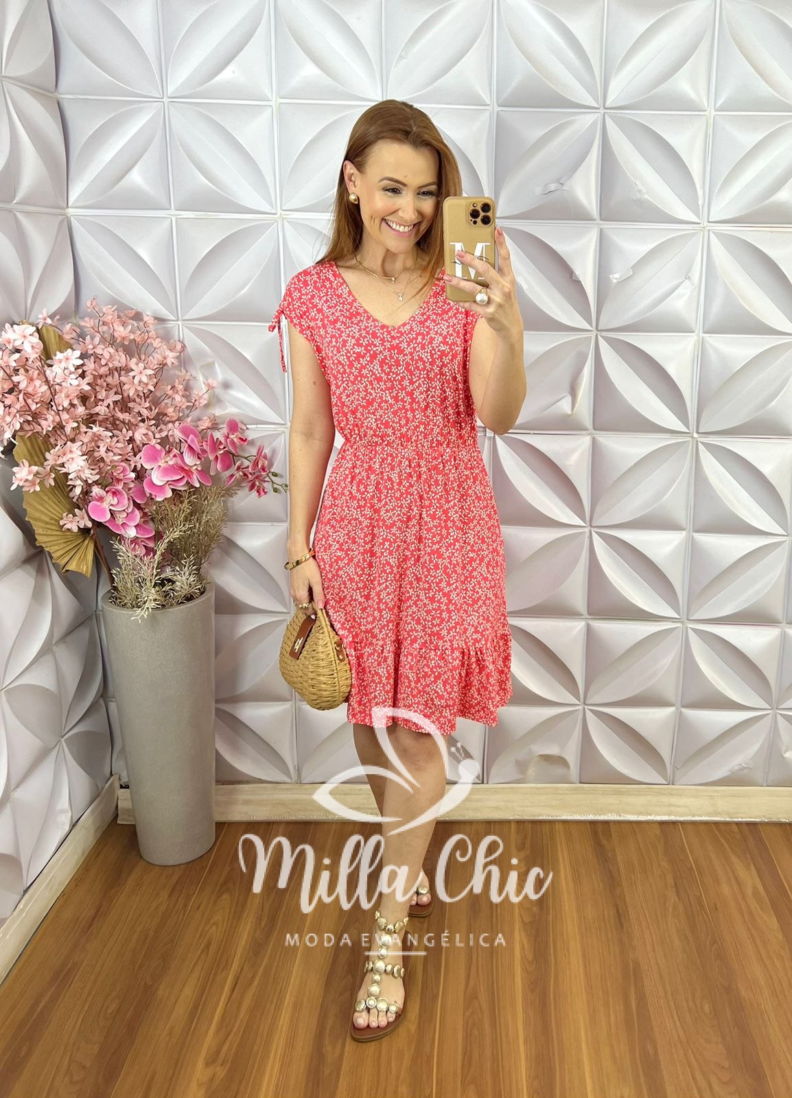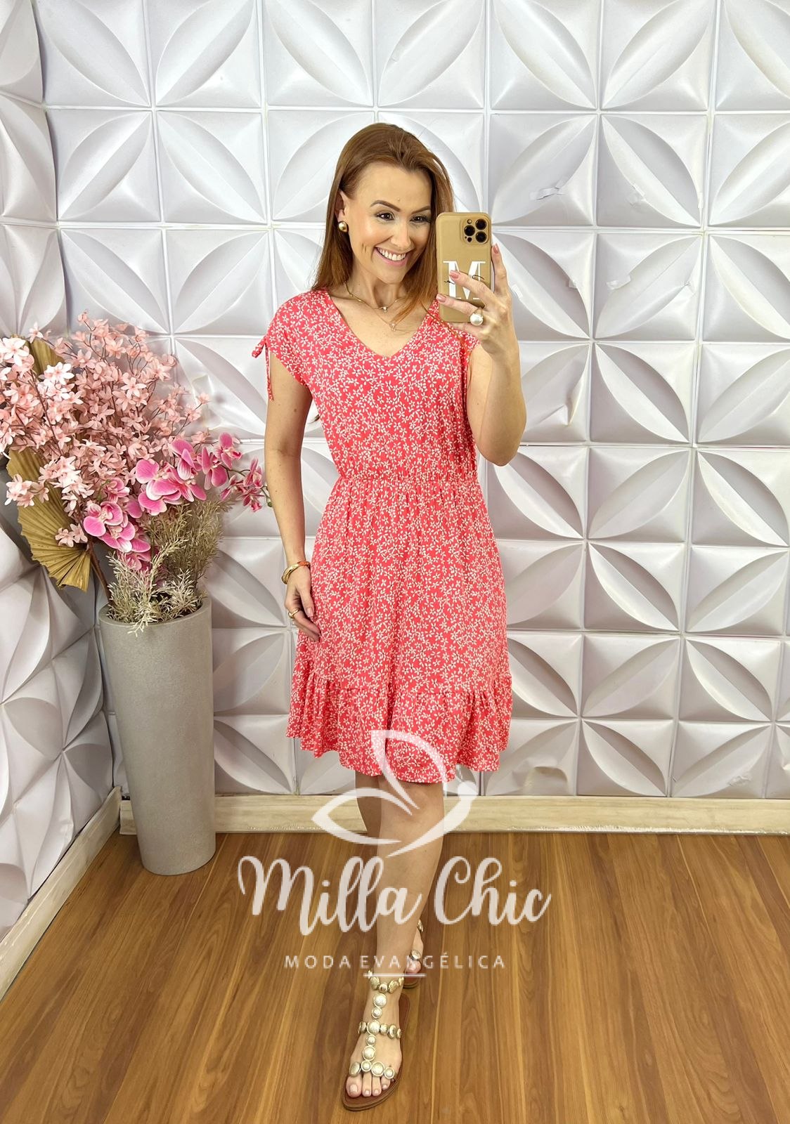 Vestido Veneza Comfy em Viscolycra - Vermelho Goiaba - Milla Chic
