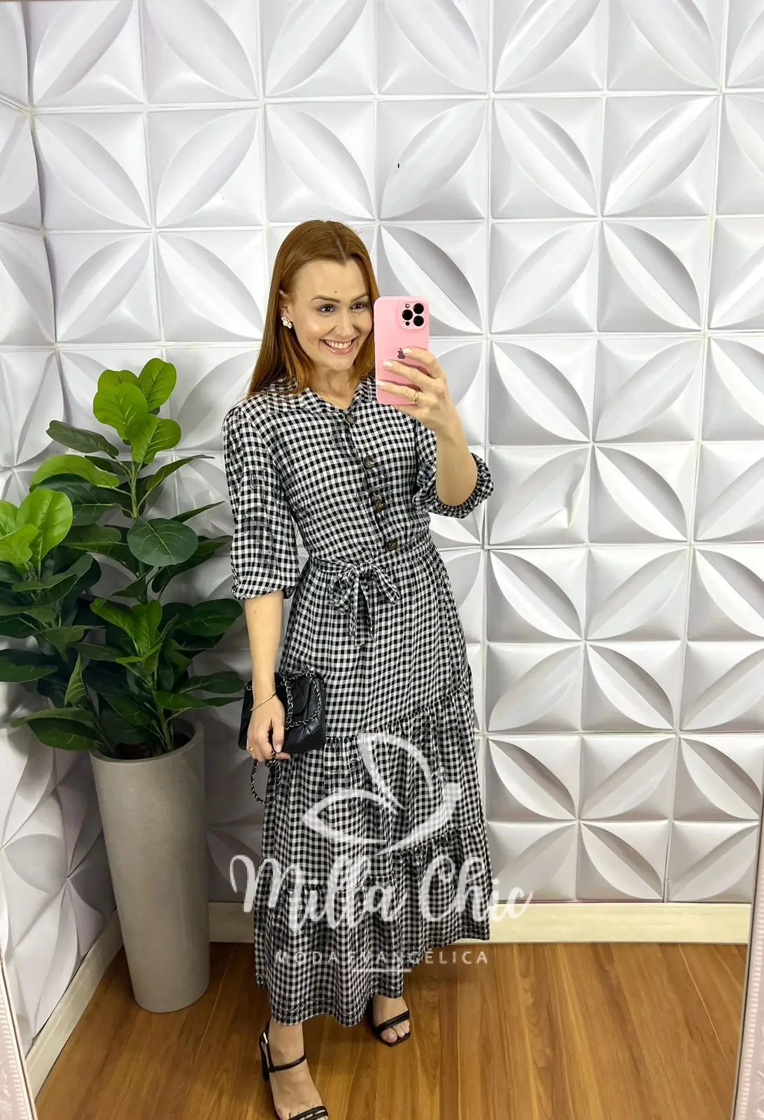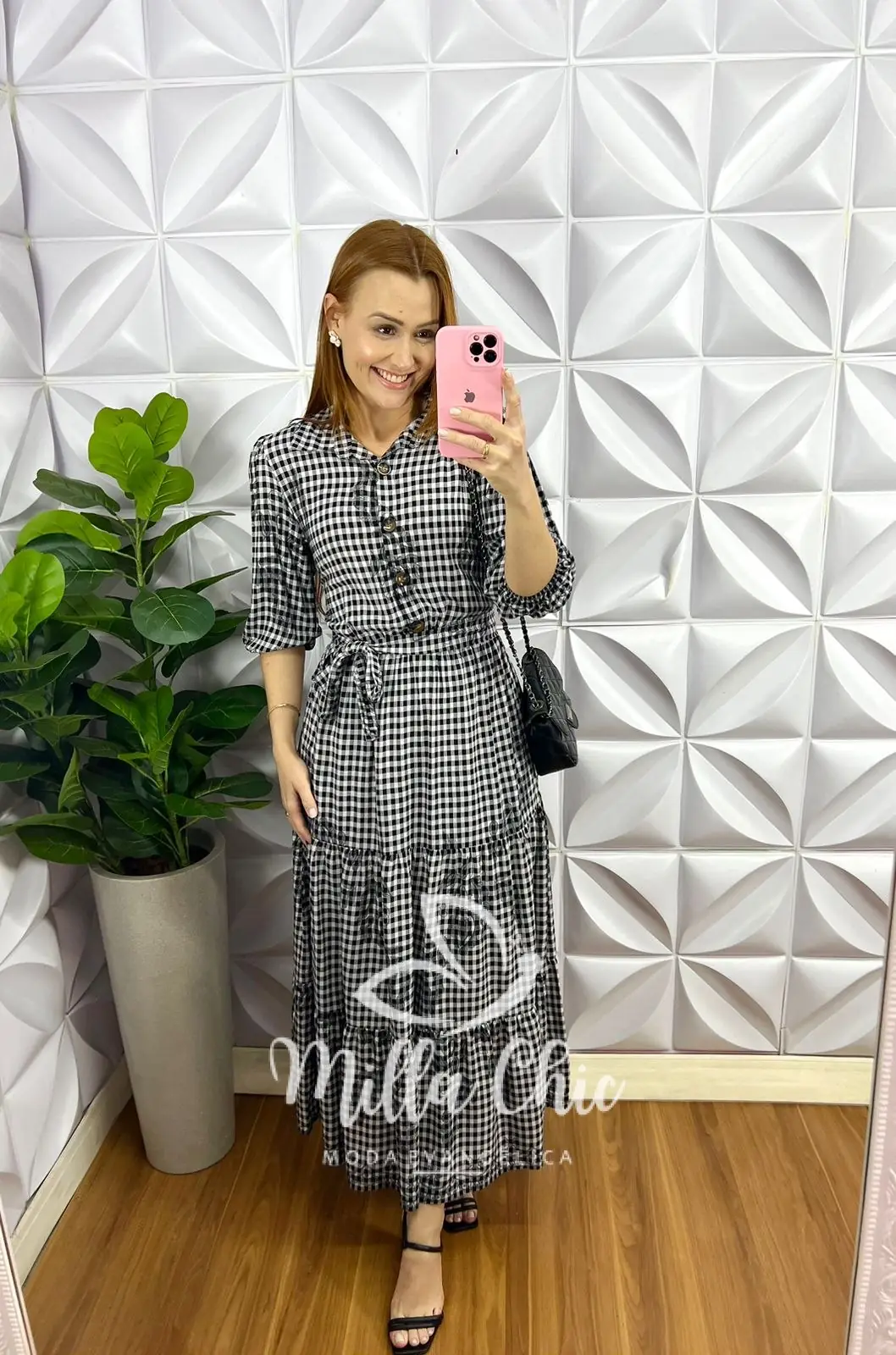 Vestido Viscolinho Longo Com Botões Estampado Daniele - Preto - Milla Chic