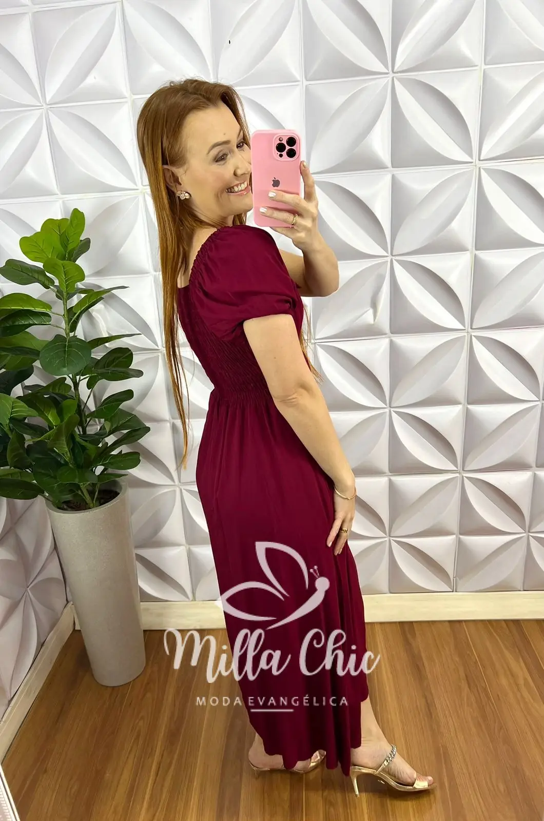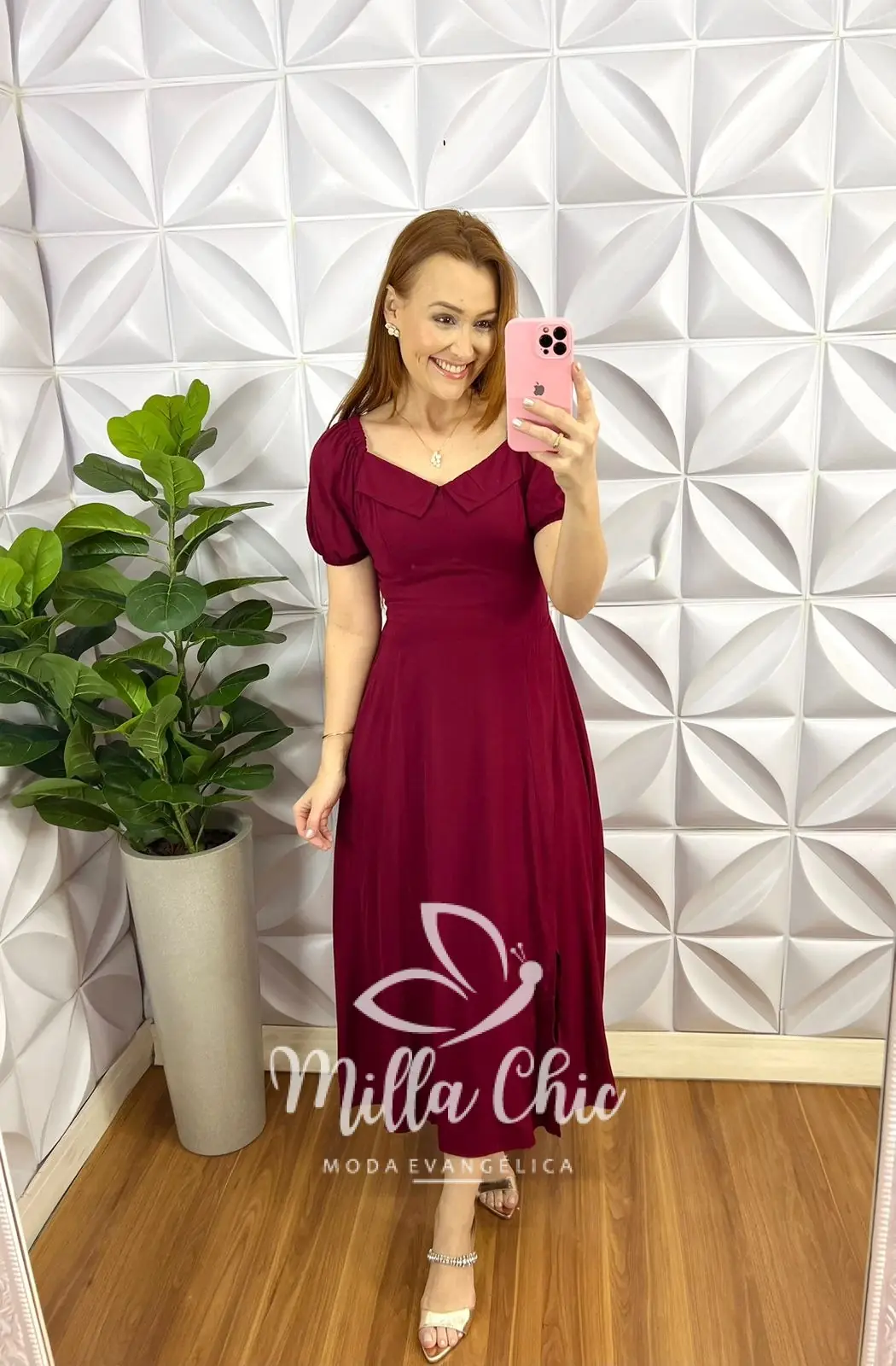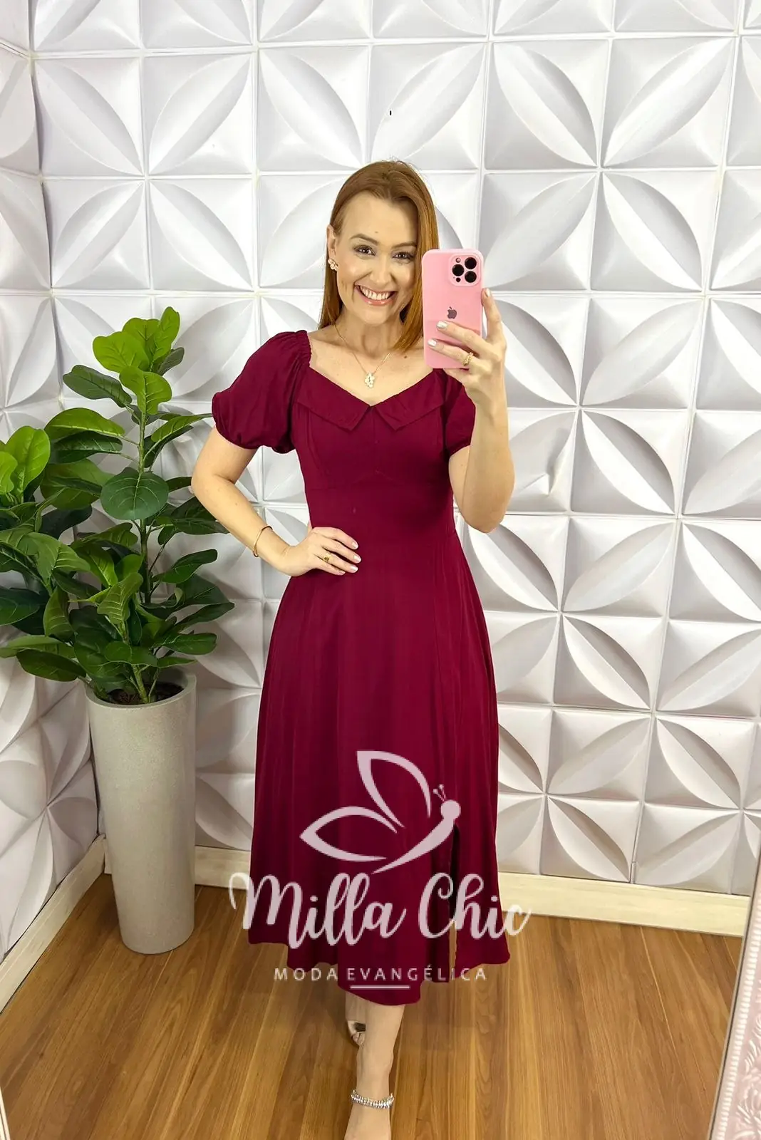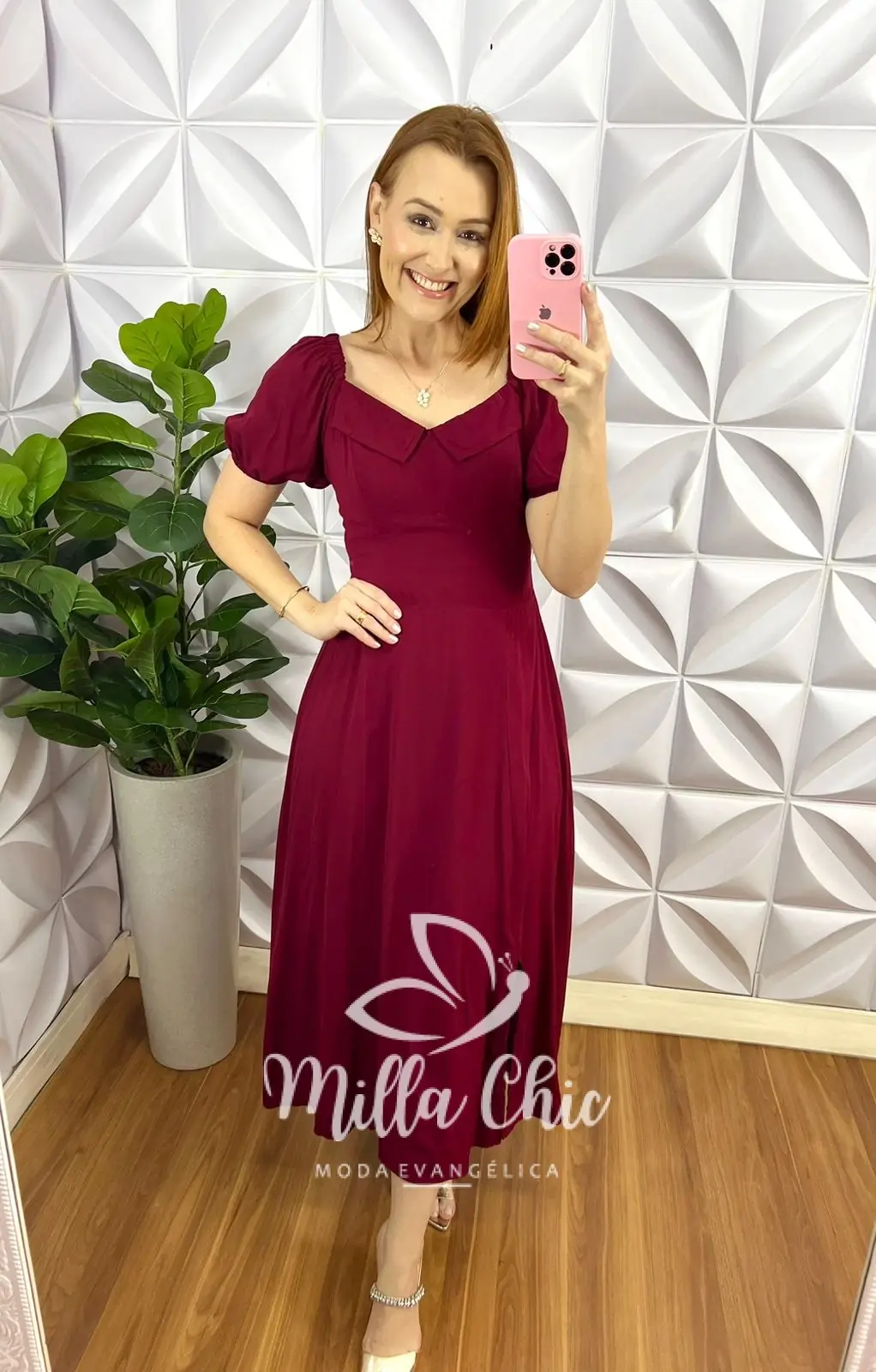 Vestido Viscolinho Mídi Com Gola Elisa – Cherry