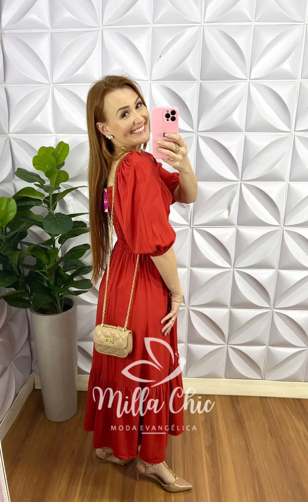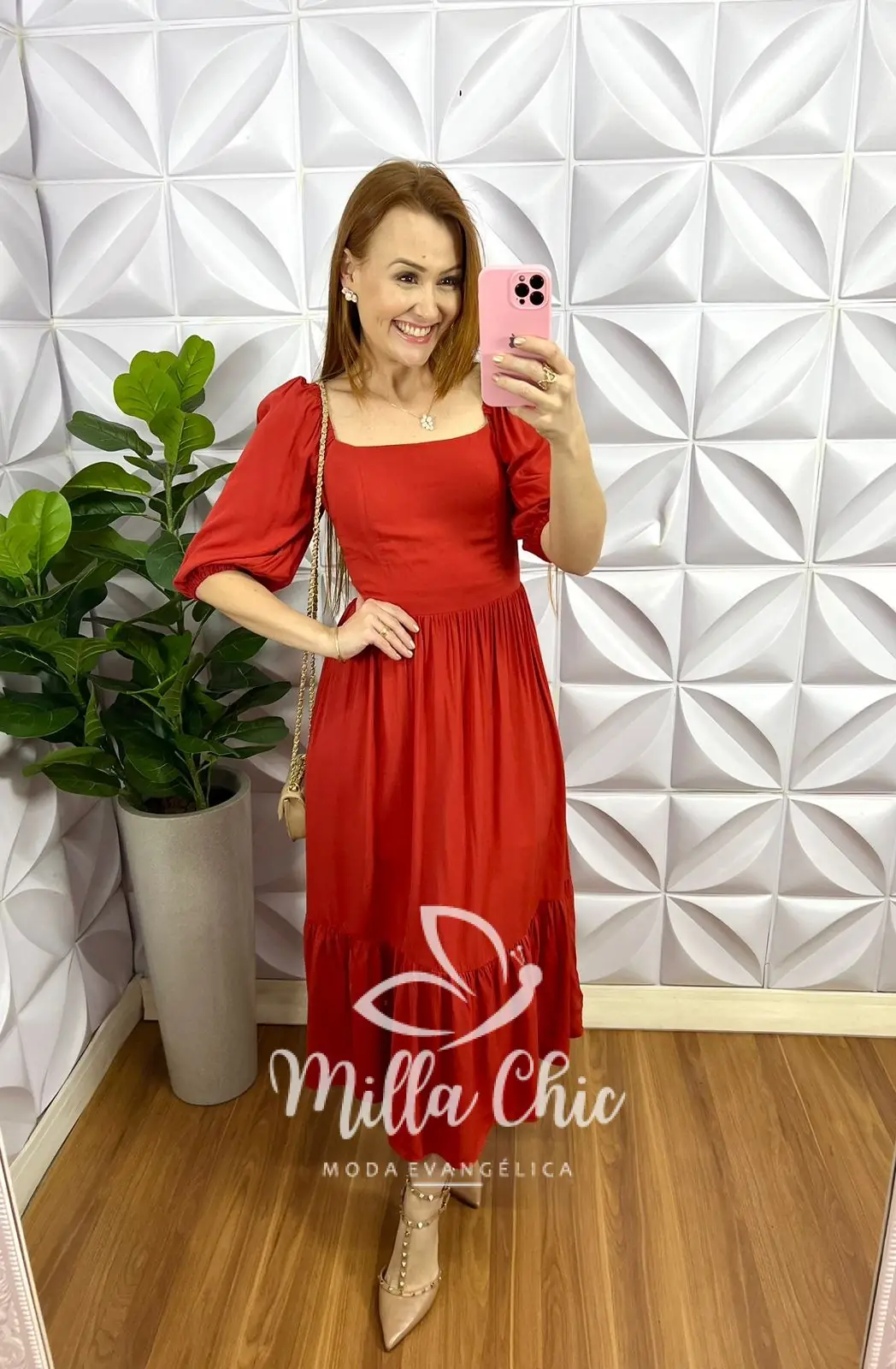 Vestido Viscolinho Mídi Evase Elisabeth - Terra Cota - Milla Chic