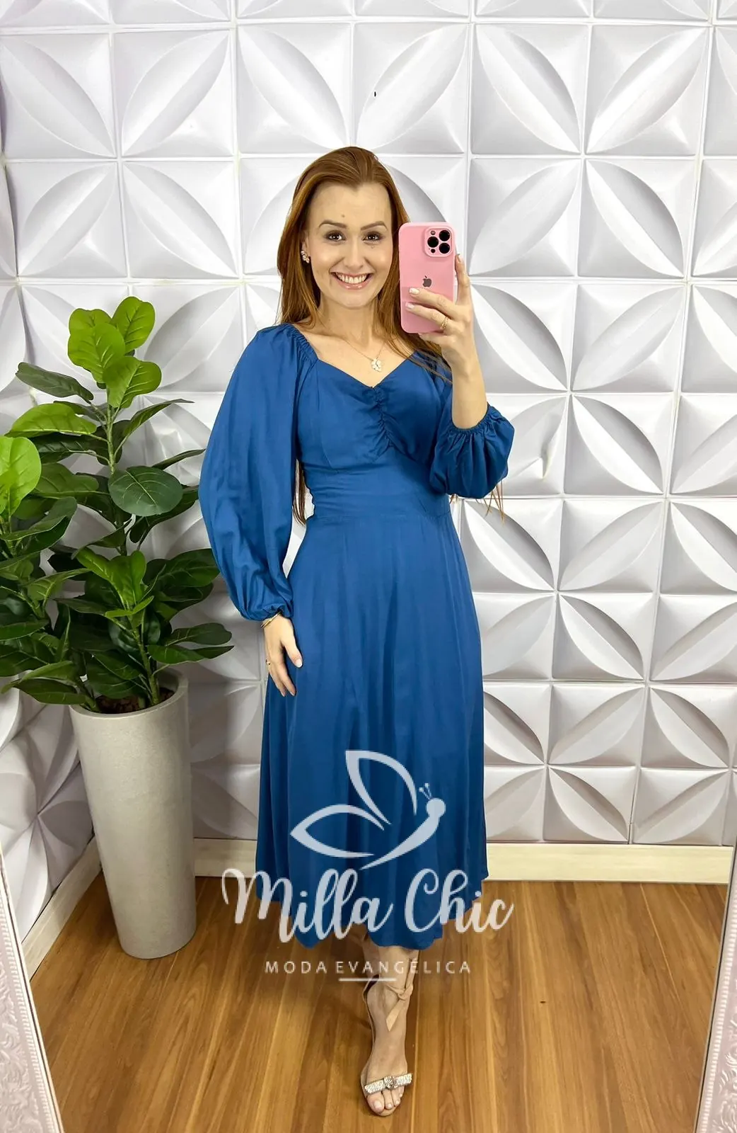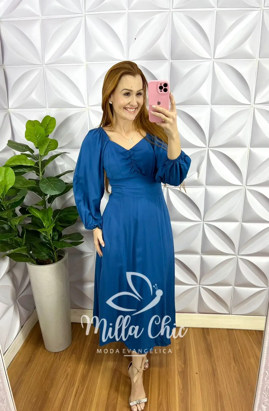 Vestido Viscolinho Mídi Manga Longa Estampado Siliane – Jade