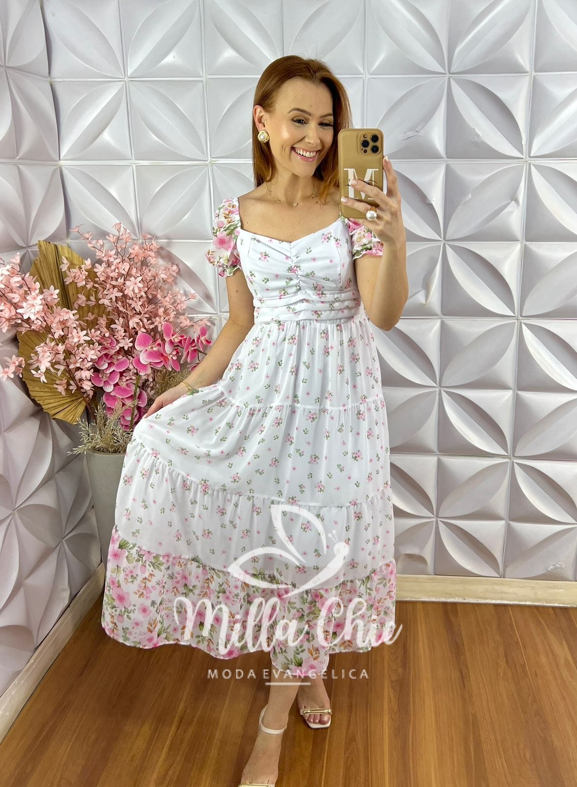 Vestido Yasmin em Chiffon - Branco - Milla Chic